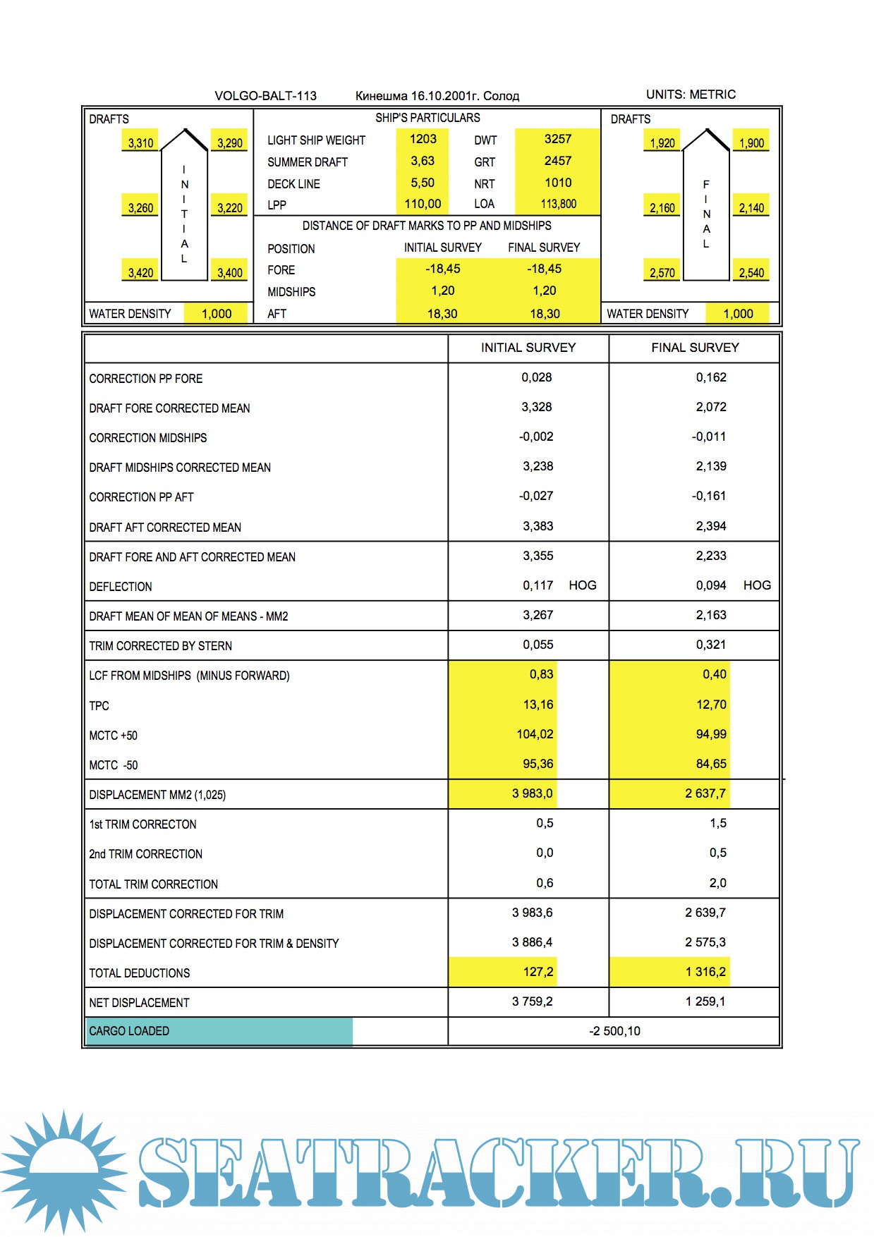 Excel программы для расчета Draft Survey