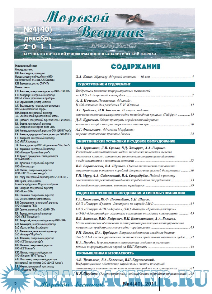 Описание: Информационные, аналитические, научно-технические и исторические статьи по морской технике и технологиям, экологической безопасности судостроения и судоходства, освоению океана и шельфа, безопасности мореплавания, истории флота и мореплаваний, морскому бизнесу и праву.