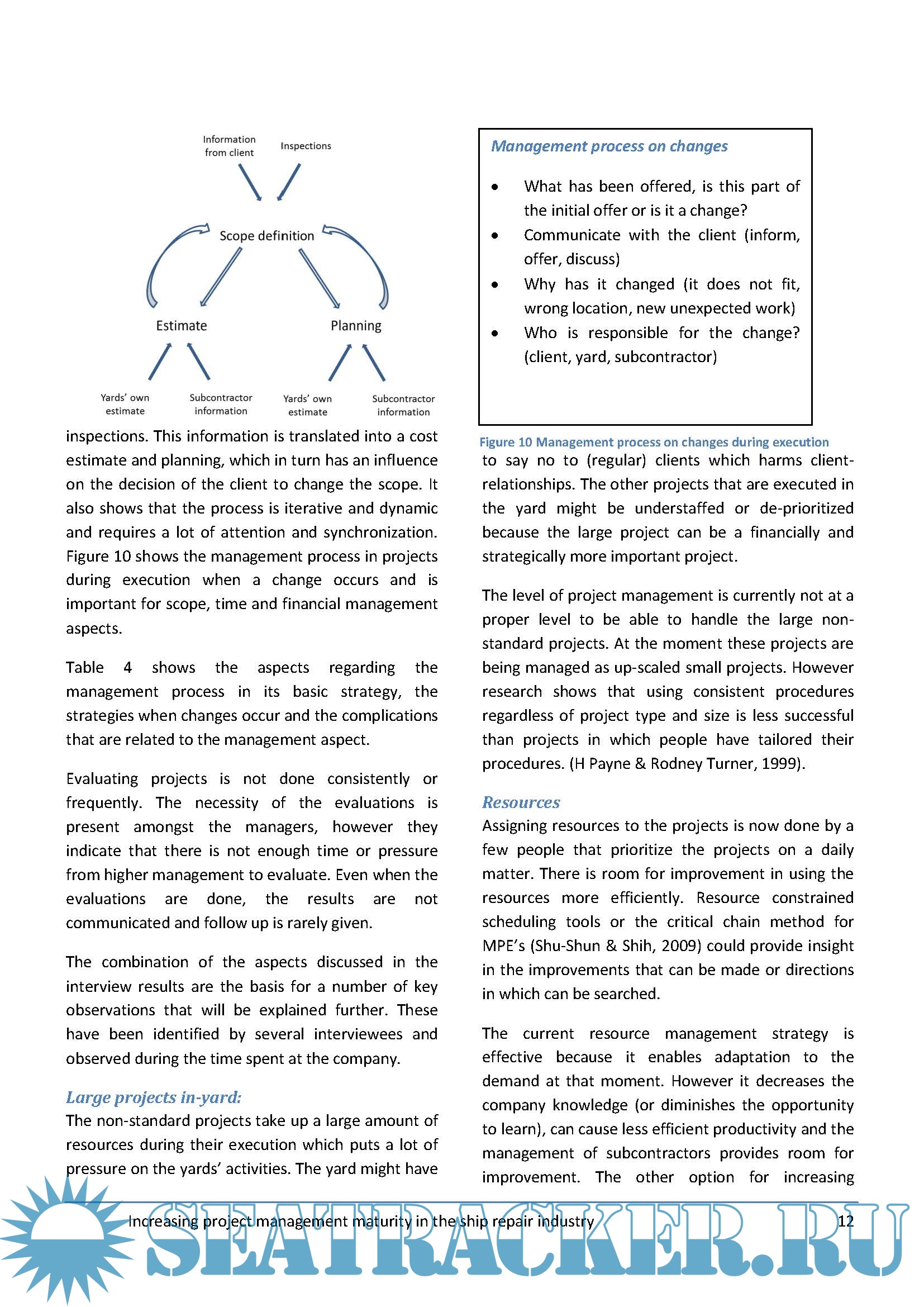 Year: 2015 Language: english Author: Laura Gallis Genre: Research papers Format: PDF Quality: eBook Pages count: 40 Description: The ship-repair industry is well-known for increases in project duration, costs and scope. Both client and company know that the estimates that have been made at the start of the projects are likely, almost inevitably going to change. Generally these changes are accepted and resolved along the way. However, this situation might change when the economic environment changes. Ship owning companies can hire organizations that stand between them and the yard, to prevent the changes within the project from affecting the outcome. The yards in their turn have inefficiency problems caused by the increase in time. To prepare for the changes in the market and improve the general yards’ processes this paper has focused on the problems that occur in large non-standard projects executed in four different ship-repair yards. These results have been compared to existing project management approaches to determine whether these are applicable to the ship repair environment. The result has been a project management maturity approach for the ship repair industry to improve the level of project management in large non-standard projects .