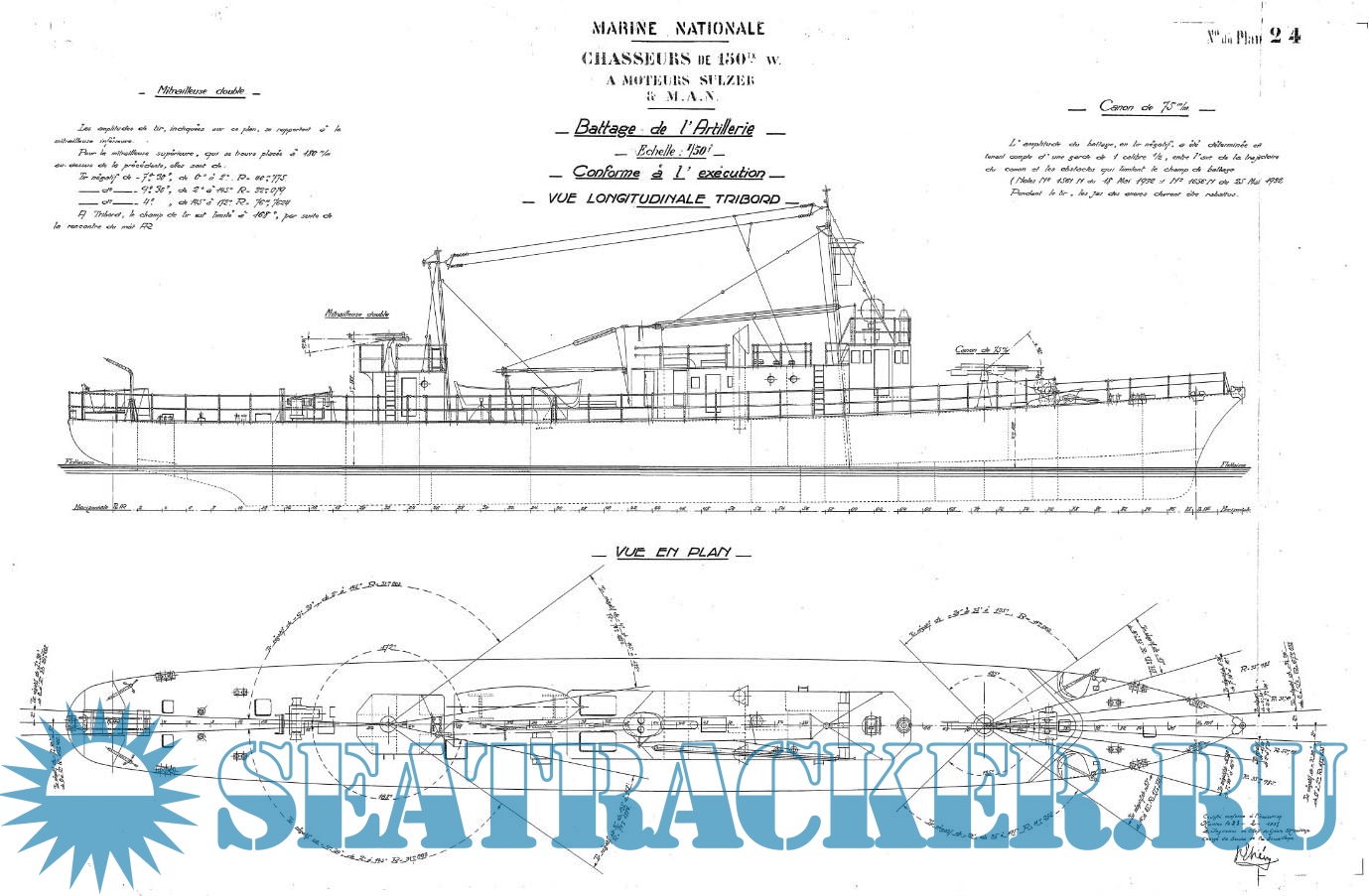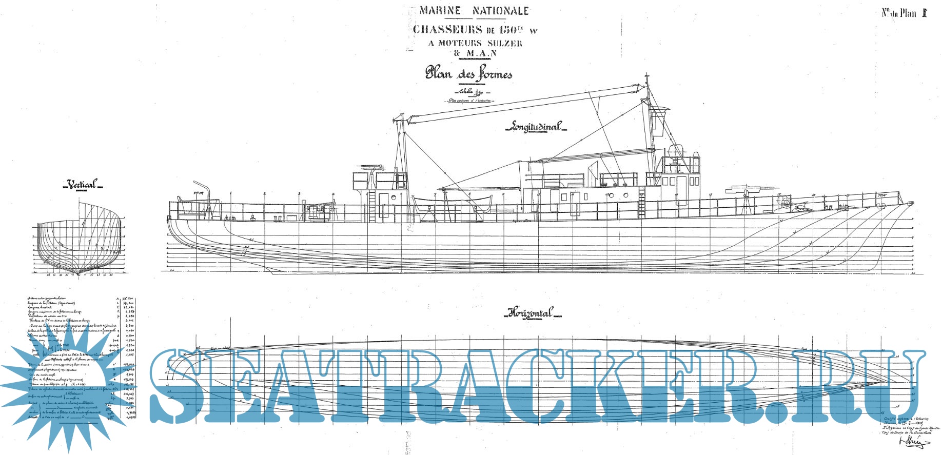Архивные чертежи канонерской лодки Chasseurs de Sous-Marins (Франция) 1933 год