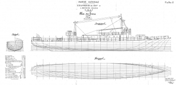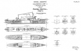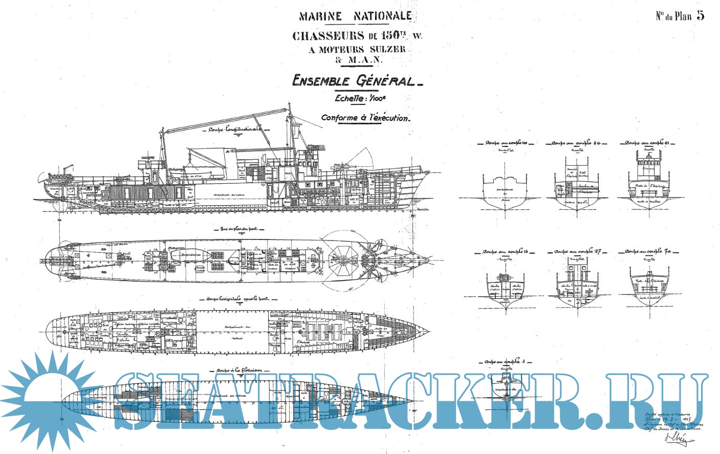Описание: 21 лист архивных чертежей канонерской лодки Chasseurs de Sous-Marins (Франция) 1933 год