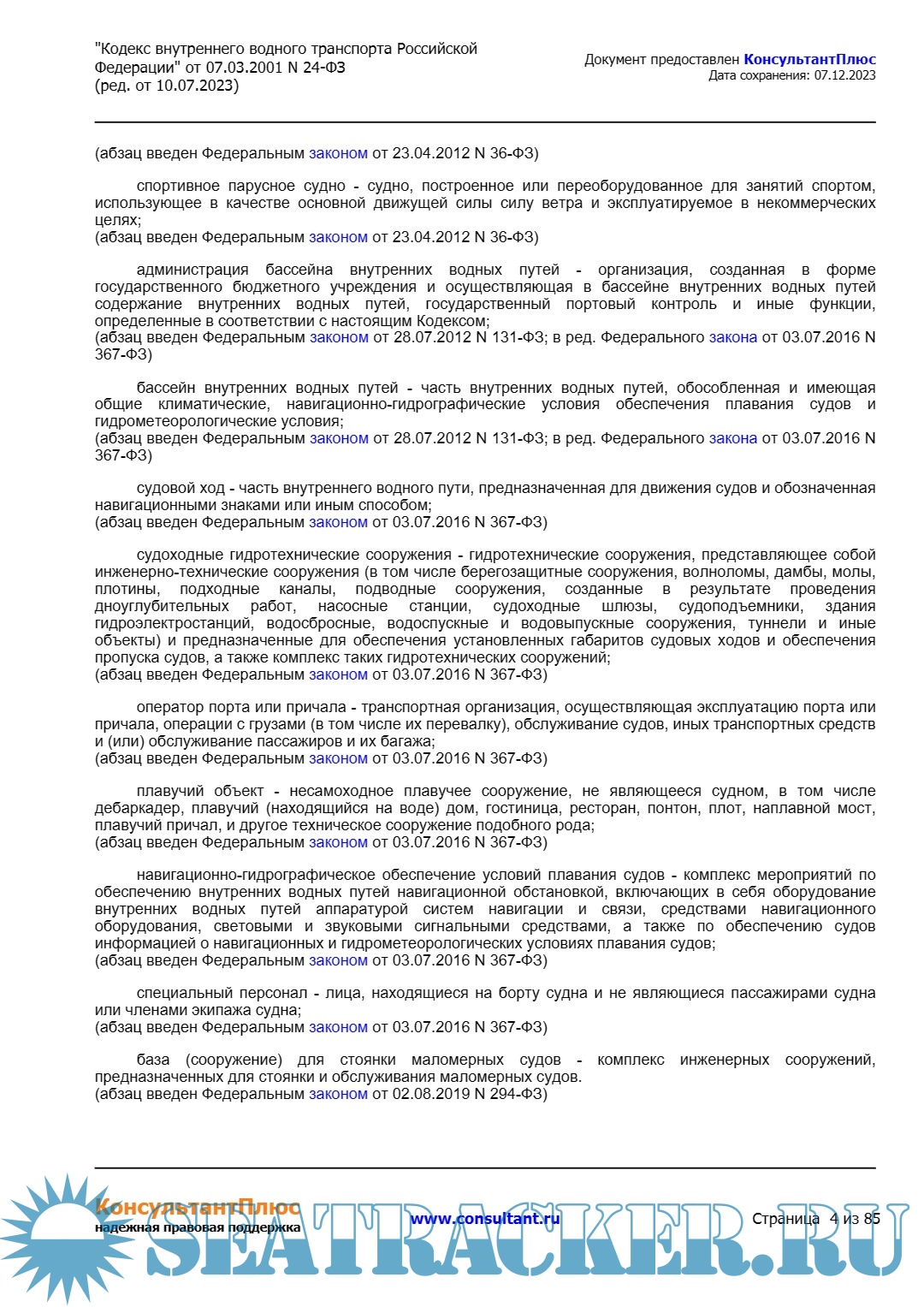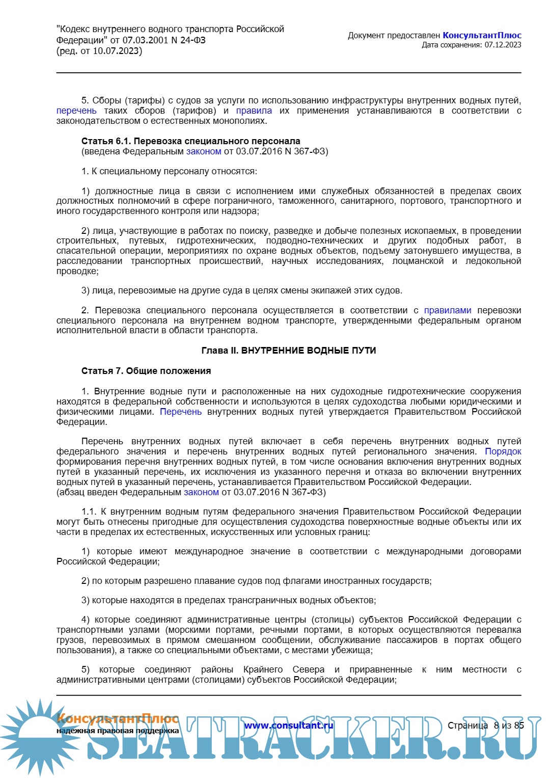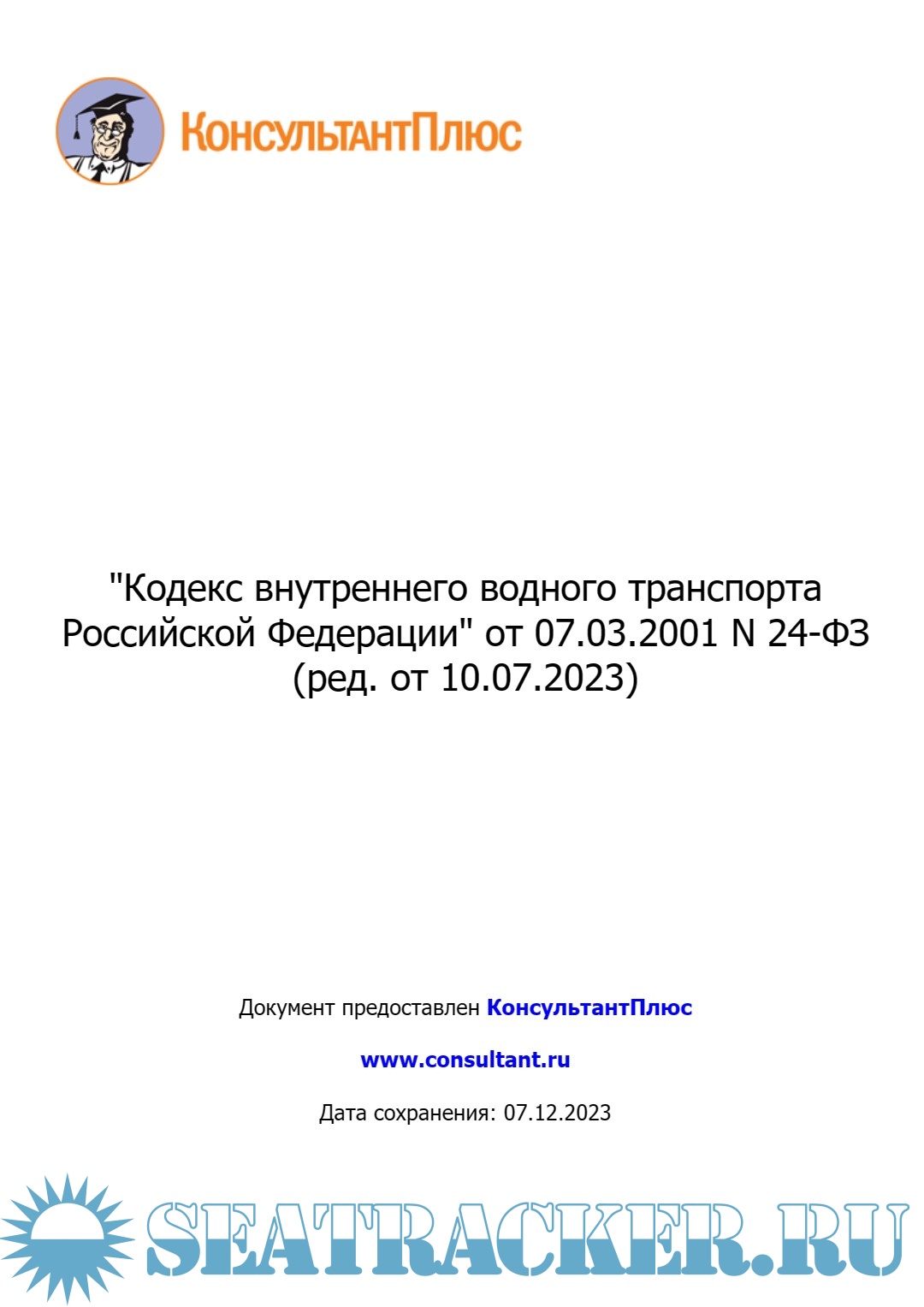 Описание: "Кодекс внутреннего водного транспорта Российской Федерации" от 07.03.2001 N 24-ФЗ(ред. от 10.07.2023).