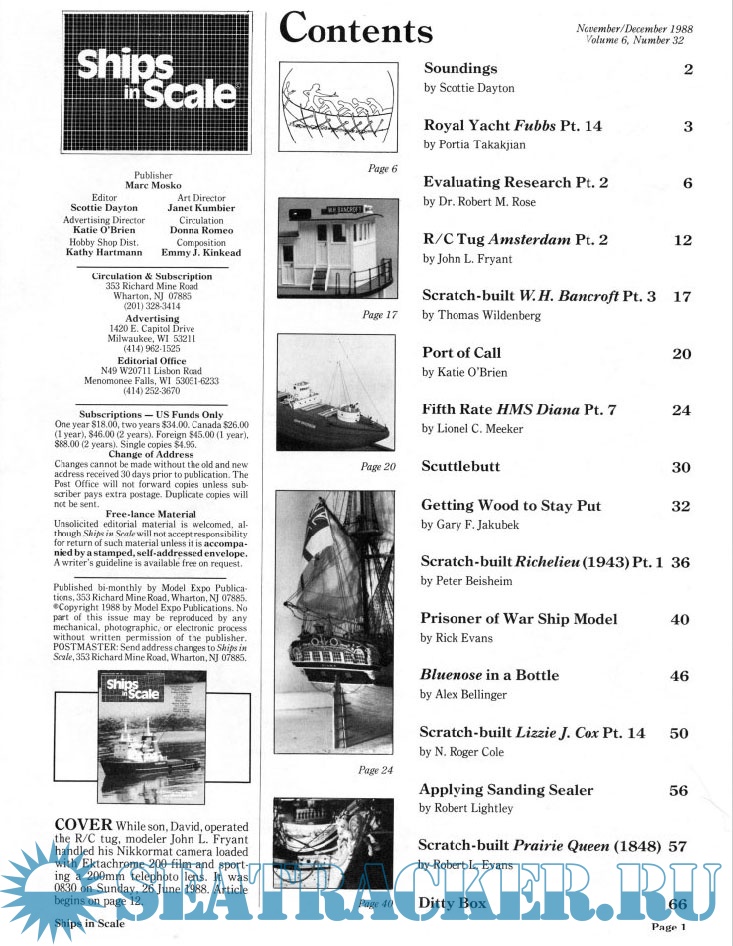 Year: 1988 Language: english Author: Scottie Dayton (Editor) Genre: Periodical (magazine) Edition: 1988-6 Format: PDF Quality: Scanned pages Pages count: 76 Description: Seaway is the home port for Seaways Ships in Scale magazine, the leading workshop and research magazine for the ship modeler. In the magazine we explore all levels of modeling experience, all types of ships, all kinds of models, all historical eras and all construction materials