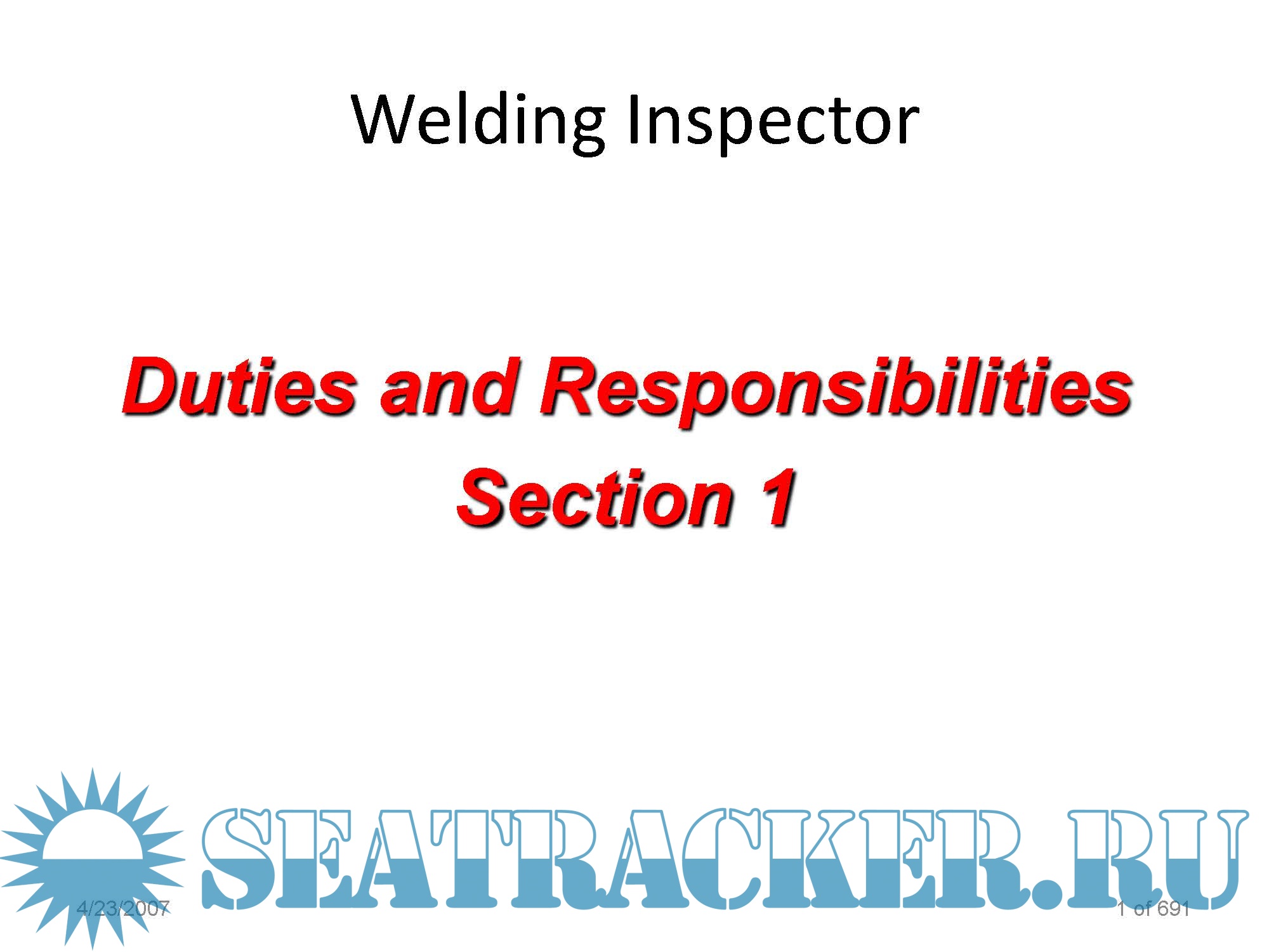 Description: This is a presentation for training of Welding Inspectors developed by CSWIP