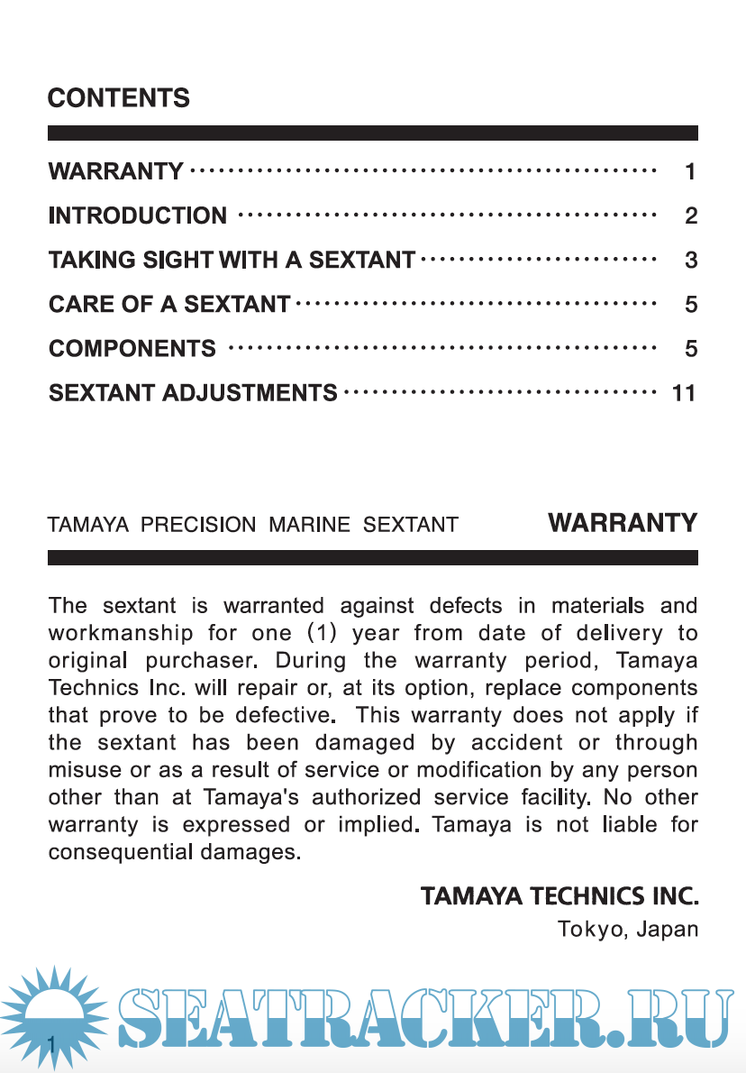 Description: Tamaya Precision Marine Sextants Catalogue, Manual, Adjustments.