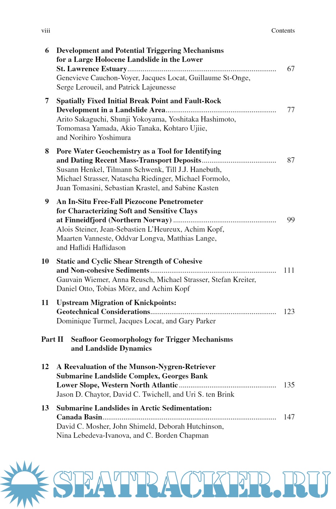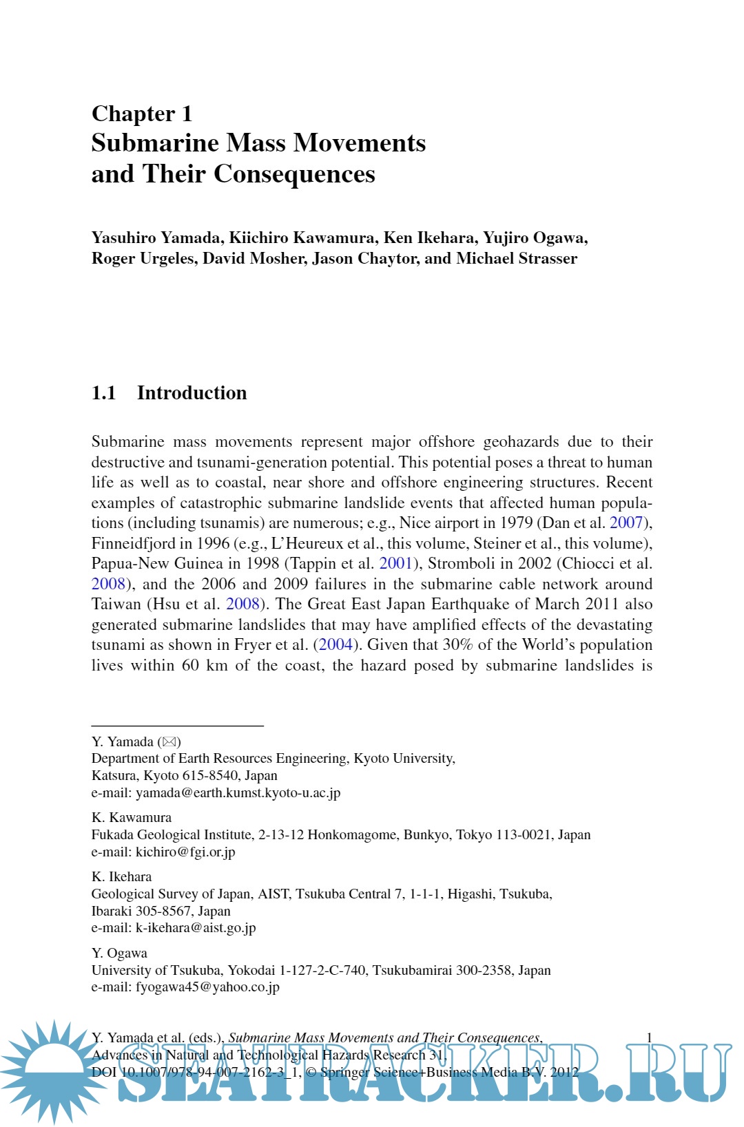 Year: 2012 Language: English Author: Yasuhiro Yamada et al Genre: Conference Publisher: Springer ISBN: 978-94-007-2161-6 Format: PDF Quality: eBook Pages count: 802 Description: Unique subject that is addressed in very few other publications and interest is growing rapidly State of knowledge of submarine mass movements and their consequences Engineering and environmental considerations of submarine slope failures Tsunami potential of submarine mass movements