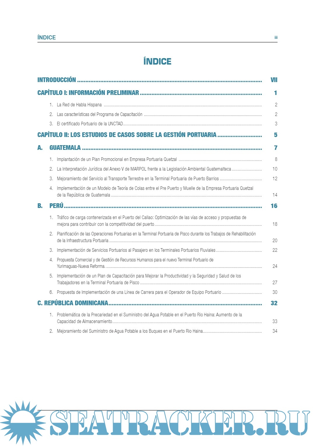 Description: Esta publicación ha sido elaborada en el marco de las actividades del Programa de Capacitación Portuaria de la UNCTAD/TrainForTrade, financiado con la contribución de los puertos de Guatemala, República Dominicana, Perú y el apoyo del Gobierno de España a través de Puertos del Estado y las Autoridades Portuarias de Gijón y Valencia. Los resúmenes de los estudios de casos fueron preparados por el Dr. José Antonio Pejóves Macedo, Consultor de la UNCTAD en base a los trabajos elaborados por los y las participantes del Curso de Gestión Moderna de Puertos del Programa de Capacitación Portuaria de la UNCTAD. Colaboraron con la producción del material el Sr. Gonzalo Ayala y la Sra. María Luz Jaureguiberry de la UNCTAD, bajo la supervisión del Sr. Mark Assaf, Jefe de la Sección de Desarrollo de Recursos Humanos / TrainForTrade y de la Sra. Geneviéve Feraud, Jefa de la Subdivisión de Desarrollo del Conocimiento de la UNCTAD. Las denominaciones empleadas en este documento y la forma en que aparecen presentados los datos que contiene no implican, de parte de la Secretaría de las Naciones Unidas, juicio alguno sobre la condición jurídica de países, territorios, ciudades o zonas, o de sus autoridades, ni respecto de la delimitación de sus fronteras o límites. La mención de una empresa y sus actividades no debe interpretarse como una muestra de apoyo de la UNCTAD a la misma o sus actividades. El contenido de esta publicación podrá citarse o reproducirse libremente siempre que se mencione su origen, con indicación de la signatura del documento (véase infra). Deberá remitirse a la secretaría de la UNCTAD un ejemplar de la publicación que contenga los pasajes citados o reproducidos. Este documento no ha sido objeto de una revisión por parte del servicio de edición.
