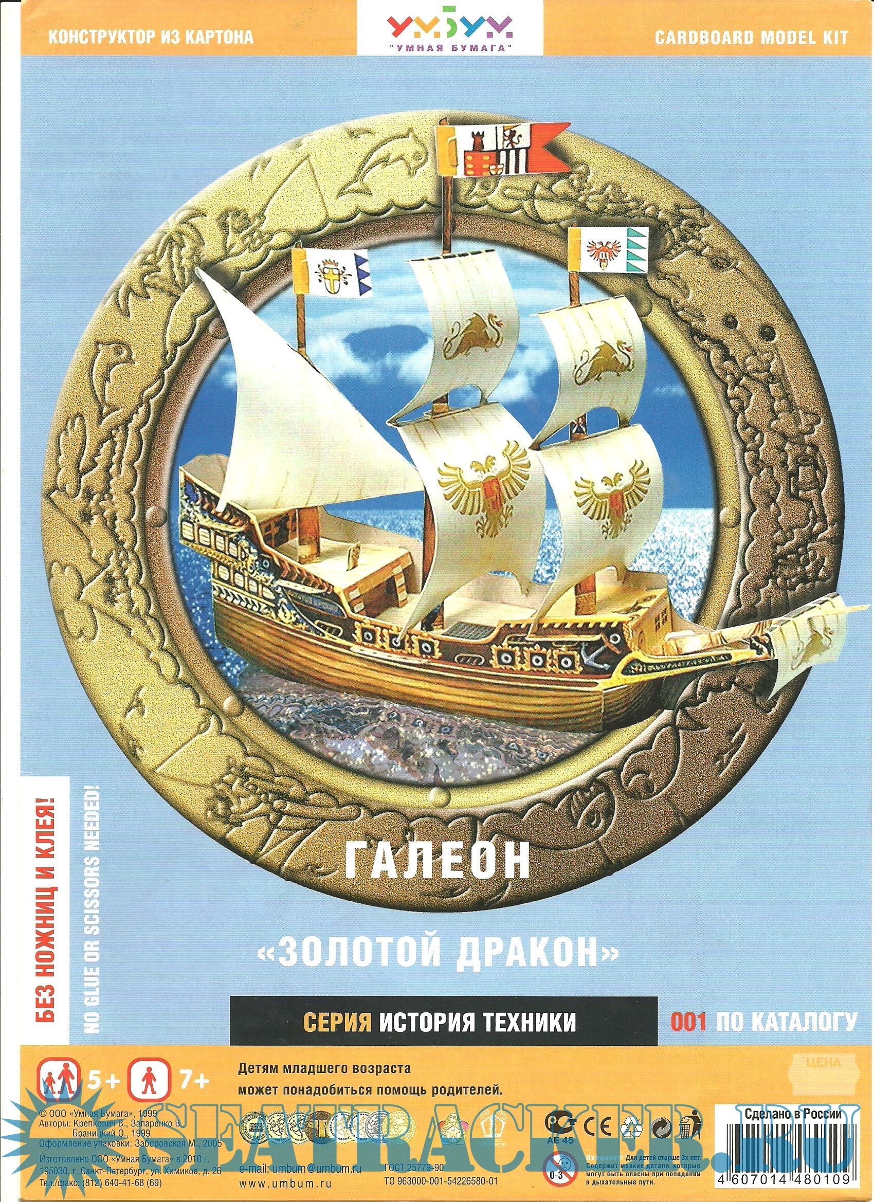 Описание: 7 листов цветных выкроек и инструкций для изготовления бумажной модели галеона "Золотой дракон"