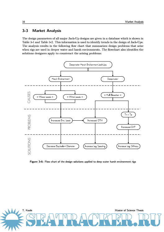 Year: 2015 Language: English Author: T. Koole Genre: Other Publisher: Delft University of Technology Format: PDF Quality: eBook Pages count: 116 Description: Jack-Ups have been used since 1954, and have become the most widely used Mobile Offshore Drilling Unit (MODU) for offshore exploration and development purposes that are carried out by oil companies such as Shell. They have been a subject of much research during the end of the 1980’s, but have seen limited publications since the change of the millennium. In the meantime, the industry has seen the introduction of a new breed of Jack-Up designs, capable of operating in water depths up to 170 meters in harsh environments such as The North Sea. In order to ensure safe operation of these newer Jack-Ups, a study is carried out to update Shell’s in-house knowledge. This allows the company to gain more insight into the various designs available and also helps to identify the governing design parameters within Jack-Up assessments. Furthermore, the future of Jack-Up designs is investigated as it will help Shell shape prospective offshore developments. A market analysis identifies the trends within Jack-Up designs which can be used to generate the models used in the main body of this research. Quasi-static environmental loads are analysed to investigate the effects of using Jack-Ups in greater water depths. The dynamic response is then added as Jack-Ups are known to show significant dynamic behaviour. Timedomain FEM is used as it allows for the incorporation of the non-linearities that are present in the system. The final chapters of this thesis focus on the future of Jack-Up design. Firstly, the limits of the current design philosophy are identified. Secondly, four possible solutions to overcome these boundaries are proposed and briefly analysed to evaluate their potential. This thesis has shown that modern Jack-Ups are characterised by large triangular hulls, holding three spacious truss legs. Rack-chocks form a very stiff leg-hull connection which has allowed designers to reduce brace diameters and increase chord spacing. This has lead to an increase in problems associated with Rack Phase Difference. Wind loads increase significantly with these modern rig designs but wave loads remain fairly unchanged due to increased leg spacing. Modern Jack-Ups therefore become more wind-dominated when compared to older designs. This stresses the need for accurate calculation of wind-loads during JackUp assessment. The dynamic response analysis and its non-linearities remain to play an important role in the assessment of the structure. Significant dynamic amplification of the oscillating wave loads is found. The future of the current Jack-Up design philosophy is limited to approximately 200 meters. As hull weights and water depths increase, a strong increase in leg stiffness is required to prevent resonance from occurring. Fabrication and operational limits prevent the stiffness from increasing further. Solutions to overcome these boundaries show the difficulties of designing hybrid structures like Jack-Ups; improvements made in one area will often lead to compromises being made in another.
