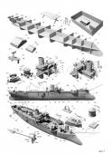 Описание: 17 листов цветных выкроек и инструкций для изготовления бумажной модели канонерской лодки КОРЕЕЦ в масштабе 1:200