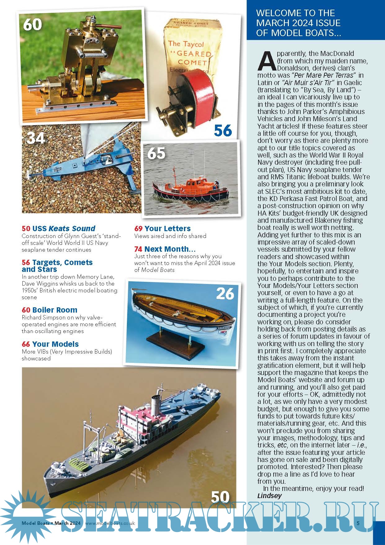 Year: 2024 Language: English Author: Lindsey Amrani (Editor) Genre: Periodical (magazine) Publisher: https://www.modelboats.com Edition: Volume 74 No.880 March, 2024 Format: PDF Quality: eBook Pages count: 92 Description: Model Boats magazine is a practical and informative read for those with a love for the hobby. It covers the latest news and views from the various clubs and associations around the country, useful hints, tips and step by step guides for those interested in the art of constructing a model boat as well as tests and recommendations of new boats and tools. Floating along behind these are great special features examining in depth different models from narrowboat to destroyer!