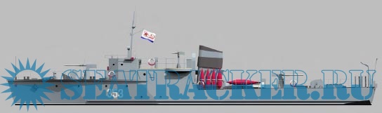 44 листа цветных выкроек и инструкций для изготовления бумажной модели тральщика класса T-371 в масштабе 1:250