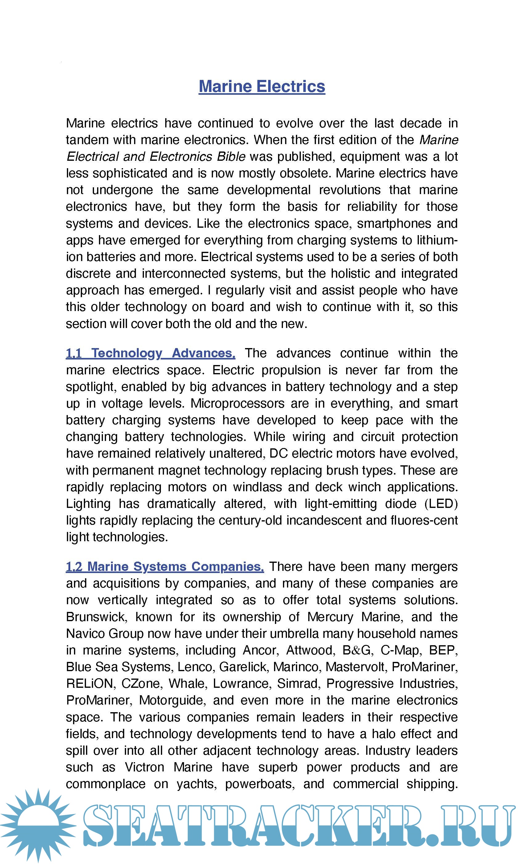 Year: 2023 Language: English Author: John C. Payne Genre: Handbook Publisher: Sheridan House Edition: 4th ISBN: 9781493074204 Format: EPUB Quality: eBook Pages count: 696 Description: The completely revised, expanded, and updated fourth edition of the world’s most comprehensive electrical and electronics handbook for sailors Marine Electrical and Electronics Bible is a useful and thoroughly practical guide that explains in detail how to select, install, maintain, and troubleshoot all of the electrical and electronic systems found on board cruising, racing, and trawler yachts, power- and motorboats, and even superyachts. This guide is fully illustrated throughout with more than two hundred charts, wiring diagrams, tables, and graphs. Light on theory and heavy on practical advice, Marine Electrical and Electronics Bible recognizes that most cruising yacht owners do not have a technical background. The chapters are formatted to enable quick access to technical descriptions and troubleshooting advice. They are also infused with the author’s own professional marine electrical background and lived cruising experiences, along with lessons learned over decades of continual input and conversations with fellow sailors. In addition to being restructured and significantly expanded, the 4th edition of Marine Electrical & Electronics Bible incorporates information on new technology equipment and devices such as AIS; the latest on GMDSS, electronic charting, NAVTEX, lightning protection, and other systems; and brand-new chapters on electrical propulsion, diesel engines, and mobile phone boating apps. Additional info: