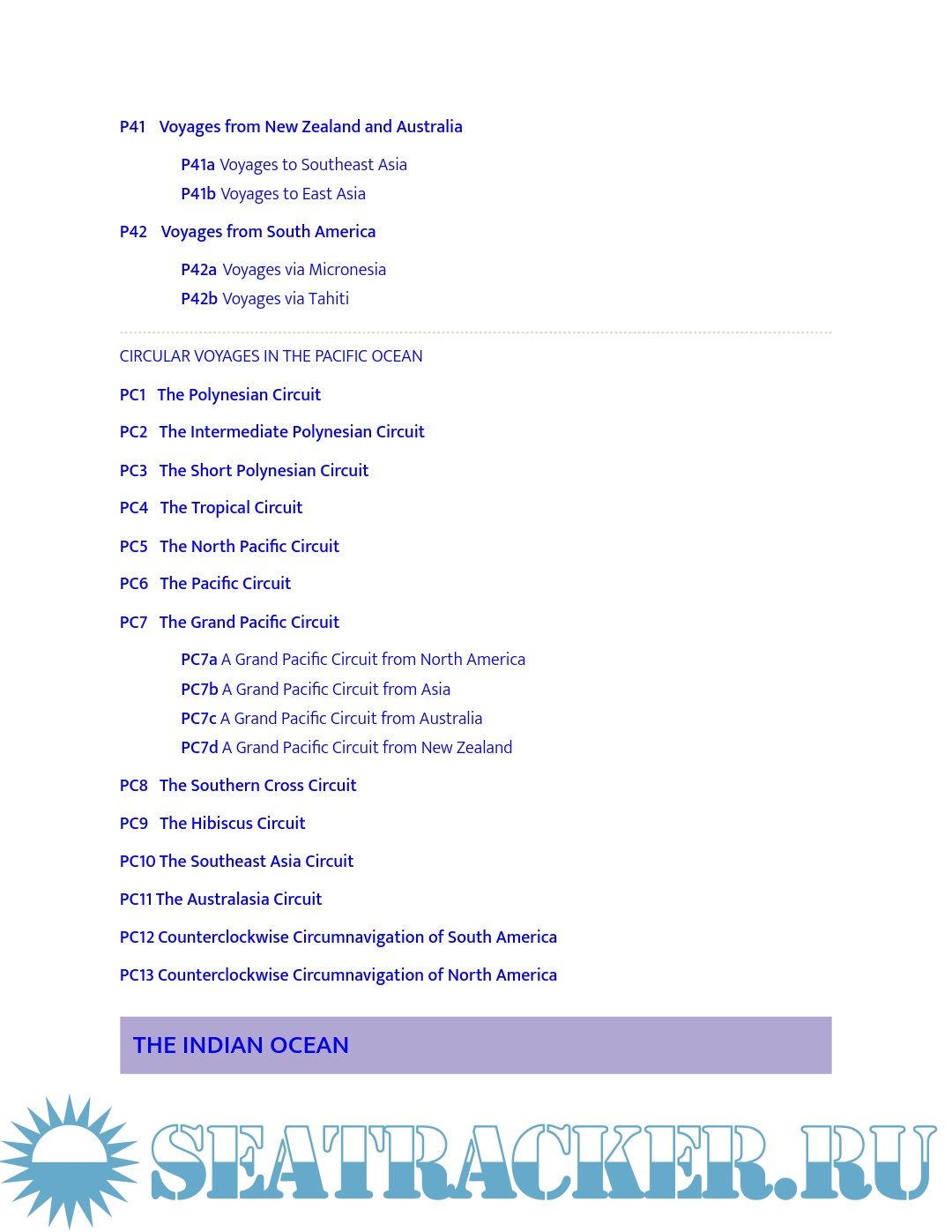 - Strategies for sailing long or short circuits in the Atlantic, Pacific and Indian Oceans