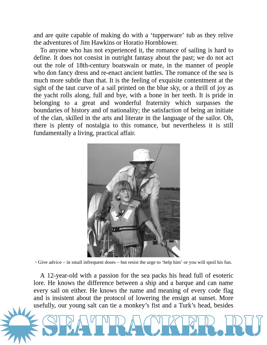 Introducing children to sailing, ideas to keep them from being bored on board, and tips for turning a mutineer into a midshipman Safety and suitability of different types of yacht; features to look for and those to avoid Dinghies suitable for use as both tender and sailing craft