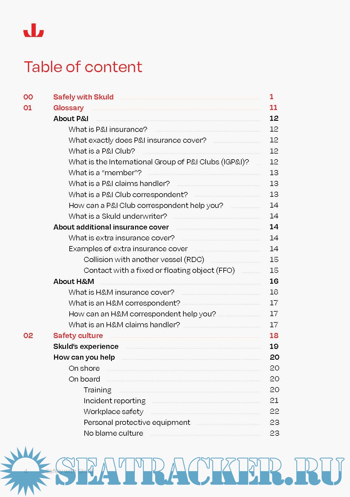 Year: 2023 Language: English Author: Skuld P&I Club Genre: Guide Publisher: Skuld P&I Club Edition: 2023 Edition Format: PDF Quality: eBook Pages count: 122 Description: This booklet is intended to be a guide for seafarers serving on board vessels and how they can contribute to reducing any damage or loss to people, the environment, the vessel, and her cargo. This guide provides insights into various marine risks which are laid out in separate sections. In addition to looking at major risks against which our shipowners are insured, we also want to provide some simple advice to help you to protect your crew and ship, as well as saving everybody a lot of trouble. As a seafarer you also help the vessel's owners. Reduced losses mean reduced insurance premiums for the shipowner. Everybody benefits if everyone is doing the right thing at the right time. This booklet was written for the seafarers who serve on the vessels insured by Skuld. It includes Skuld's specific loss prevention experience gained over the many years we have been serving our members. The booklet is meant to be used as a reference book to which chapters the seafarers can turn whenever they look for answers to their questions.