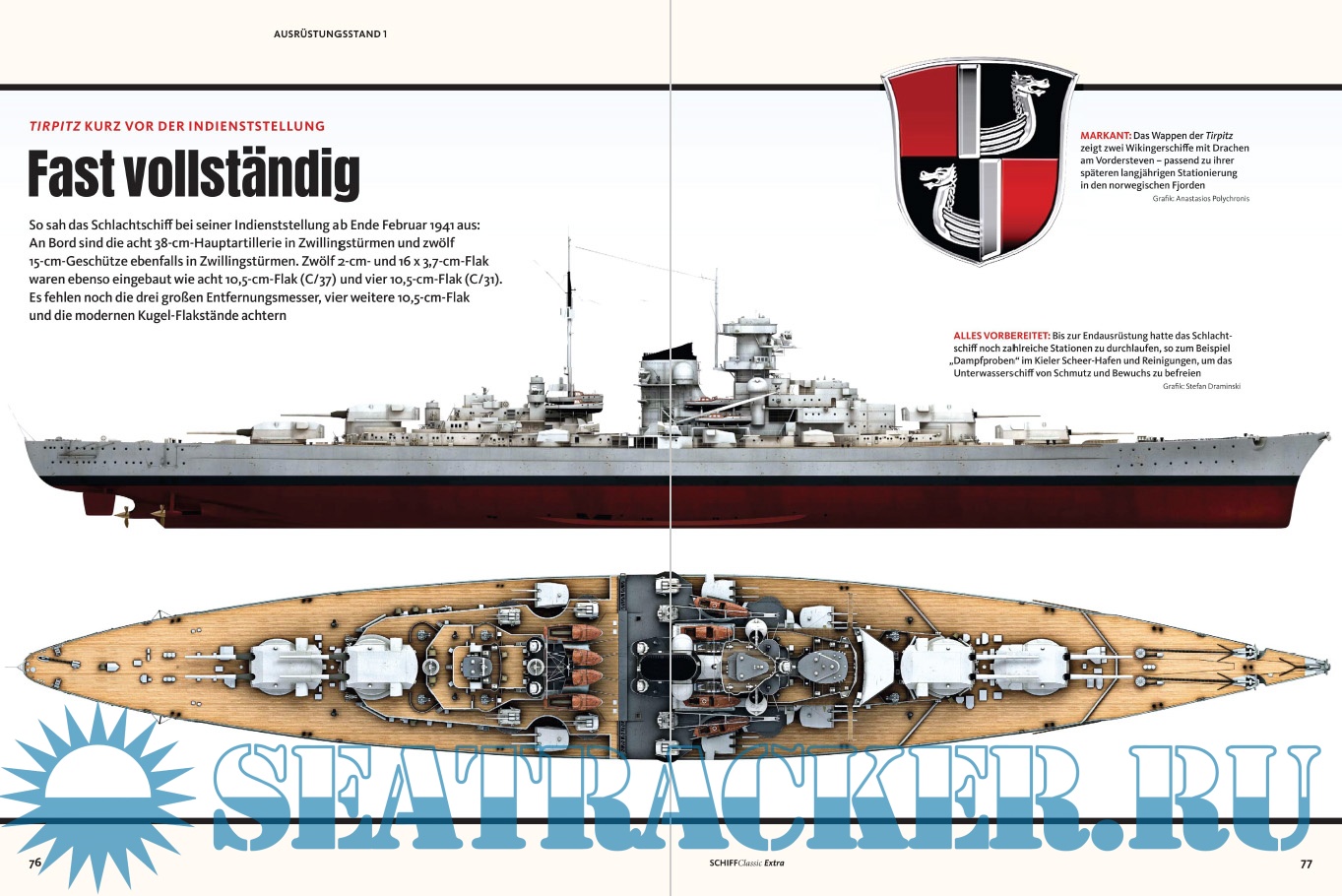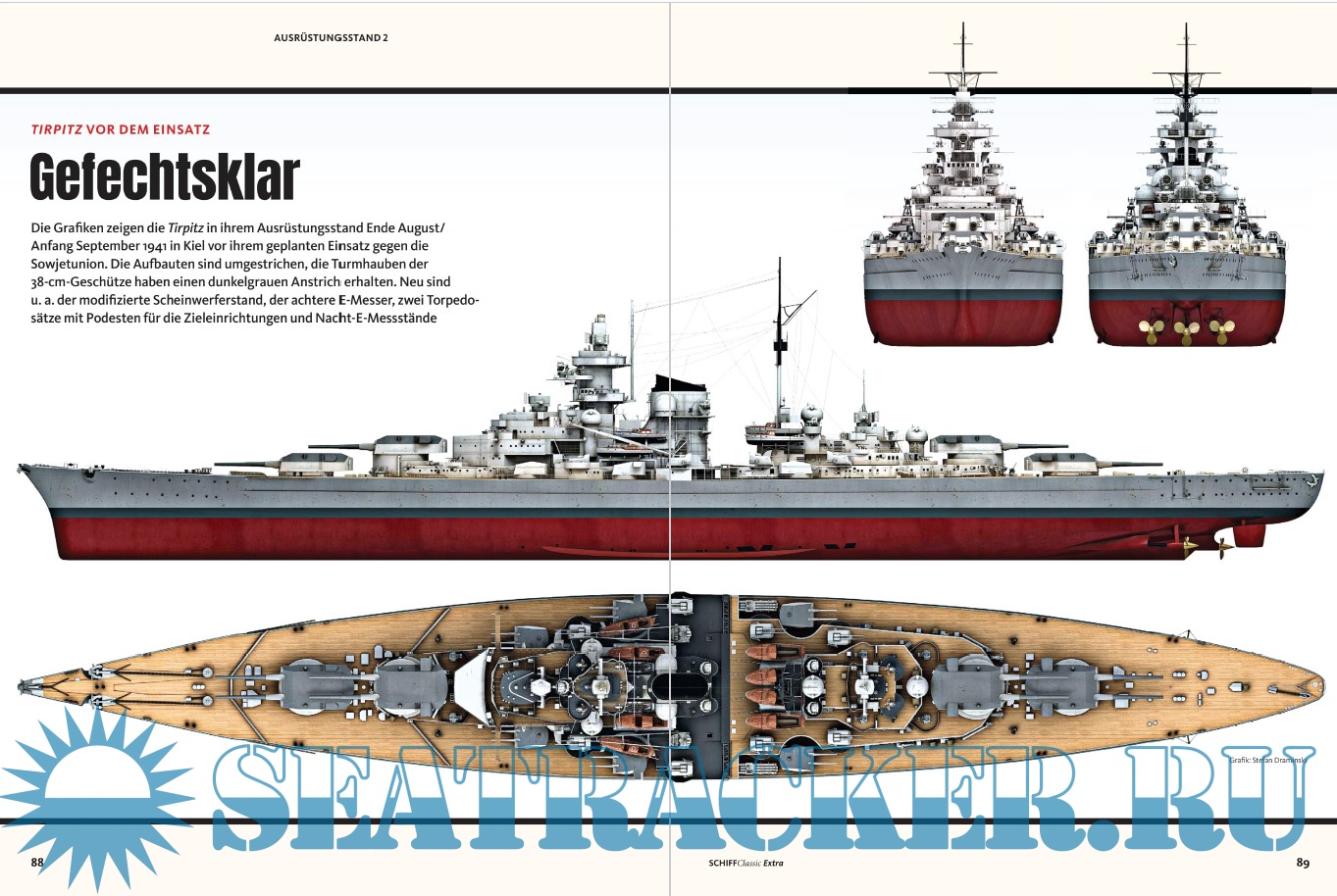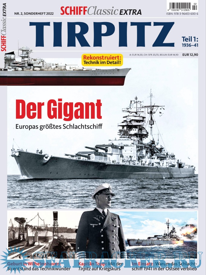 Year: 2022 Language: german Author: Markus Wunderlich (Editorial Director) Genre: History Publisher: GeraMond Edition: Schiff Classic Extra 2/2022 Format: PDF Quality: eBook Pages count: 100 Description: Die Tirpitz war das Schwesterschiff der berühmten Bismarck und Europas größtes Schlachtschiff. Schiff Classic Extra widmet sich diesem Kampfkoloss in einer zweibändigen Ausgabe. Teil 1 reicht von 1936 bis 1941 und dreht sich um Konzeption, Bau und erste Einsätze. 3D-Illustrationen zeigen Technik in allen Details, während eine Fülle kaum bekannter Fotos die Entstehung der Tirpitz und die Verhältnisse an Bord vor Augen führen.