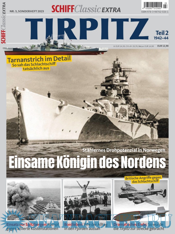 Year: 2023 Language: german Author: Markus Wunderlich (Editorial Director) Genre: History Publisher: GeraMond Edition: Schiff Classic Extra 3/2023 Format: PDF Quality: eBook Pages count: 100 Description: Die Tirpitz war das Schwesterschiff der berühmten Bismarck und Europas größtes Schlachtschiff. Schiff Classic Extra widmet sich diesem Kampfkoloss in einer zweibändigen Ausgabe. Teil 2 reicht von 1936 bis 1941 und dreht sich um Konzeption, Bau und erste Einsätze. 3D-Illustrationen zeigen Technik in allen Details, während eine Fülle kaum bekannter Fotos die Entstehung der Tirpitz und die Verhältnisse an Bord vor Augen führen.