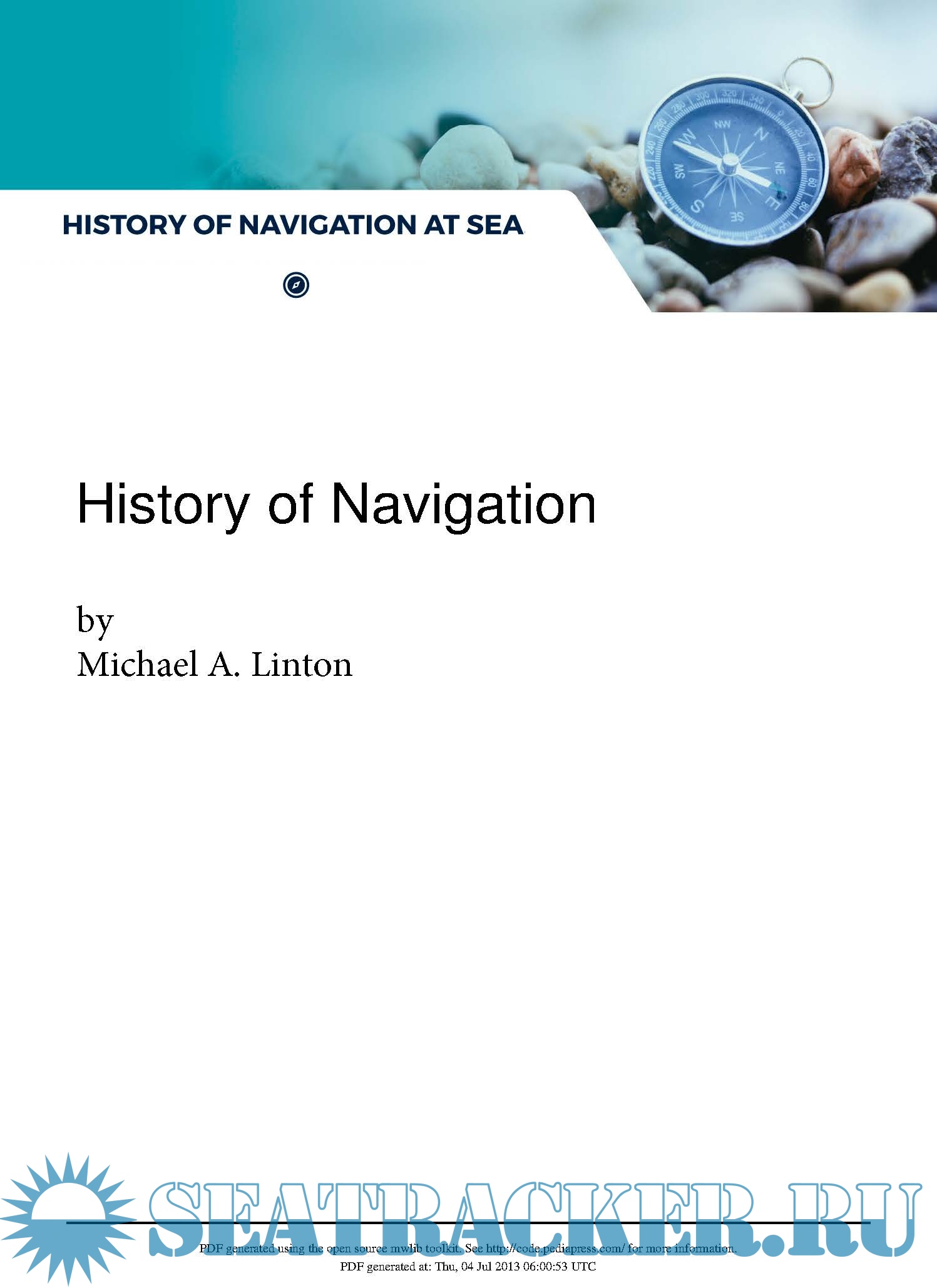 Year: 2013 Language: english Author: Michael A. Linton Genre: History Format: PDF Quality: eBook Pages count: 158 Description: This article is about the history of maritime navigation. The history of navigation, or the history of seafaring, is the art of directing vessels upon the open sea through the establishment of its position and course by means of traditional practice, geometry, astronomy, or special instruments.