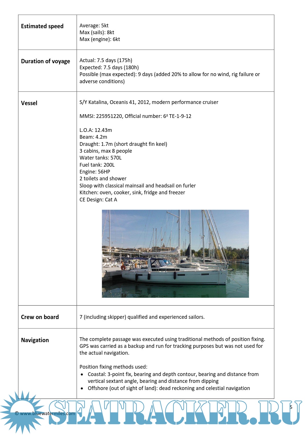 Description: Narrative Account of the Planning and Execution of the Qualifying Ocean Passage