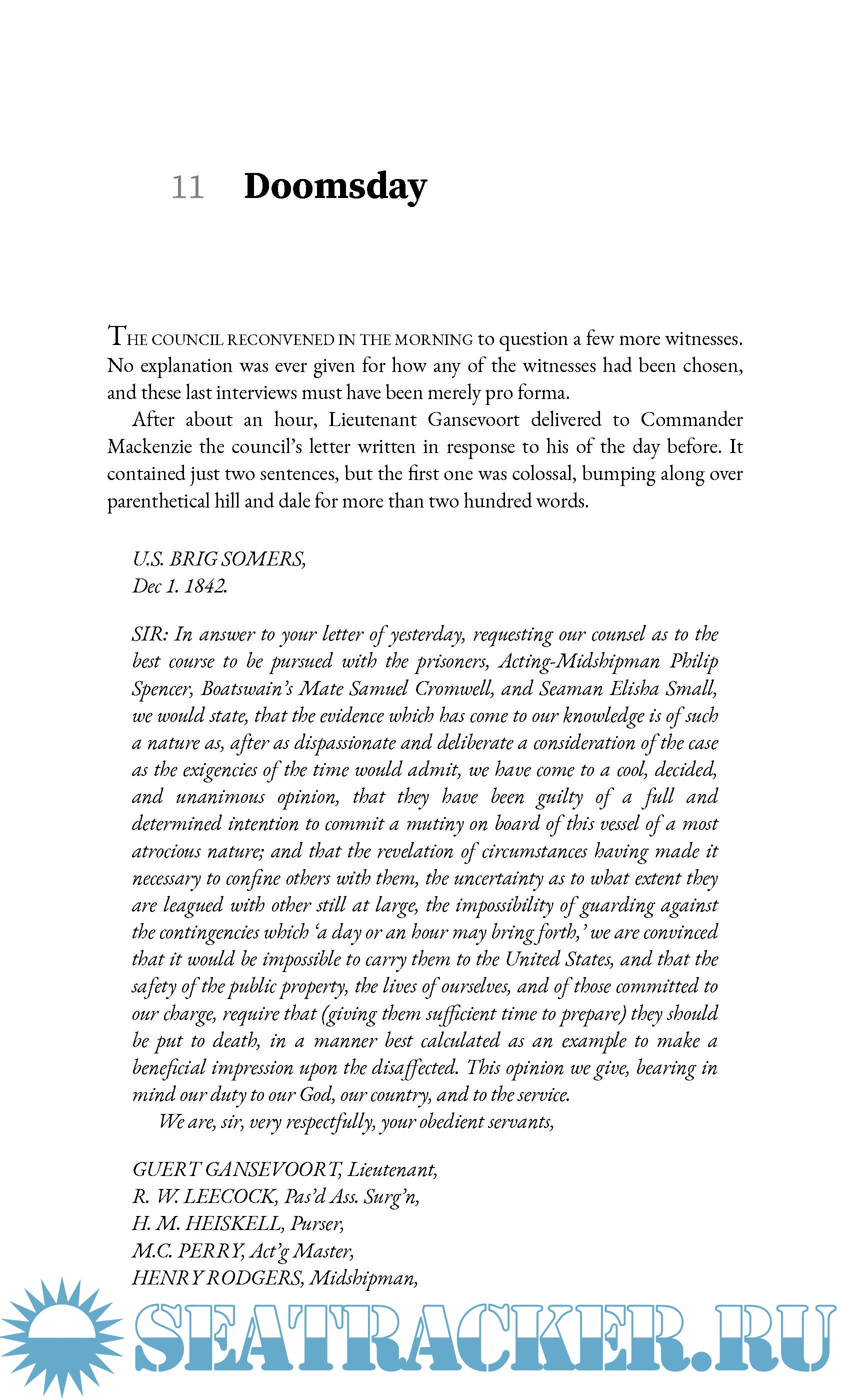 On December 16, 1842, the US brig-of-war Somers dropped anchor in Brooklyn Harbor at the end of a cruise intended to teach a group of adolescents the rudiments of naval life. But this seemingly harmless exercise ended in catastrophe. Commander Alexander Slidell Mackenzie came ashore saying he had narrowly prevented a mutiny that would have left him and his officers dead. Some of the thwarted mutineers were being held under guard, but three had been hanged: Boatswain’s Mate Samuel Cromwell, Seaman Elisha Small, and Acting Midshipman Philip Spencer, whose father was the secretary of war, John Spencer.
