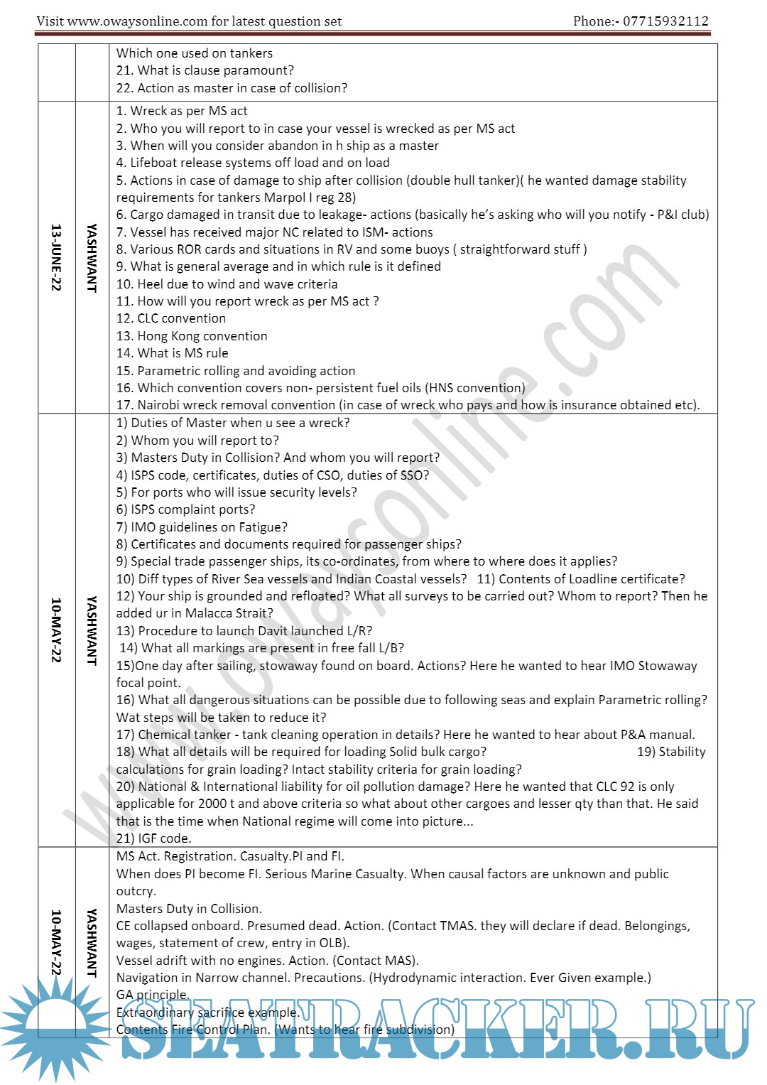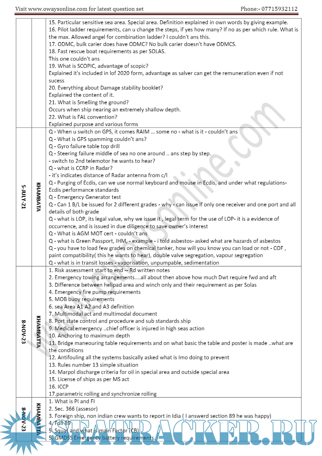 Orals Question Bank (March 2023) for ASM (Advanced Shipboard Management) / Master's Mercantile…