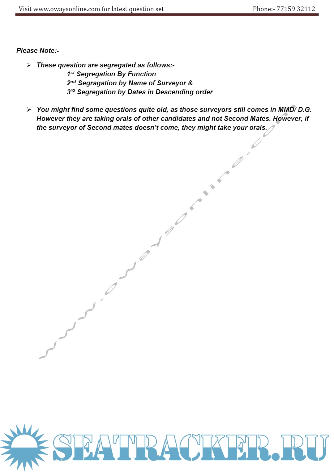 Description: 2nd Mate MMD Orals Exams Surveyor Question Set Mumbai.Question set arranged in the order Functions / surveyors / Dates.