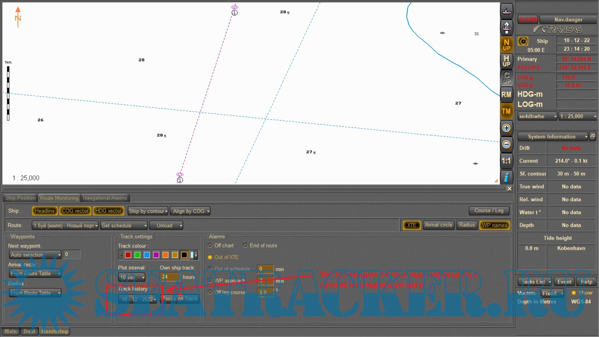 В строке ввода Own ship track введите значение времени, которому будет
