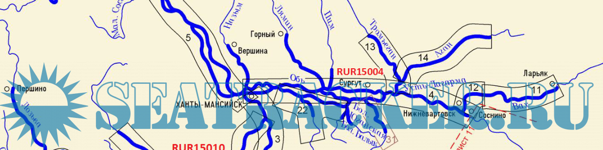 По каталогу Трансаса RUR15004 -ср. течение р .Обь от Соснино до Ханты-Мансийска.
