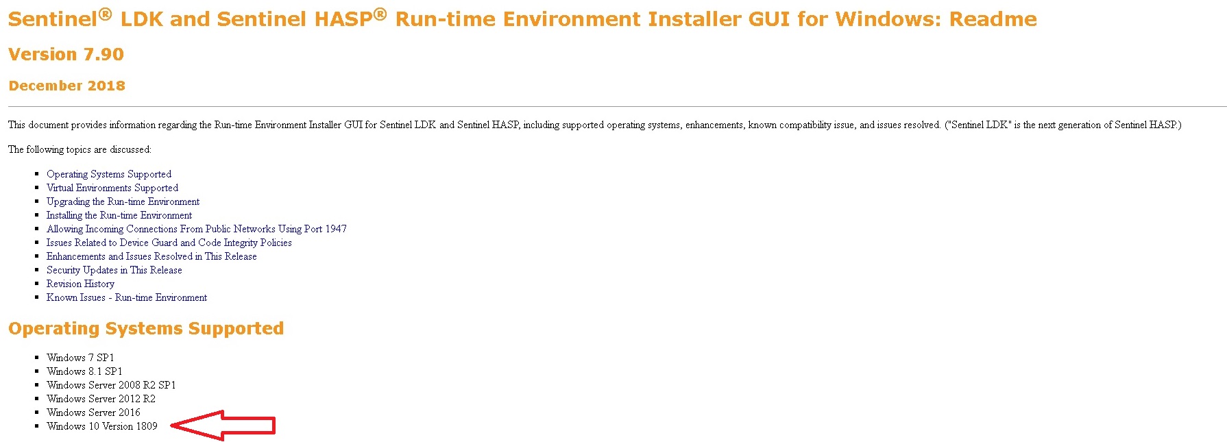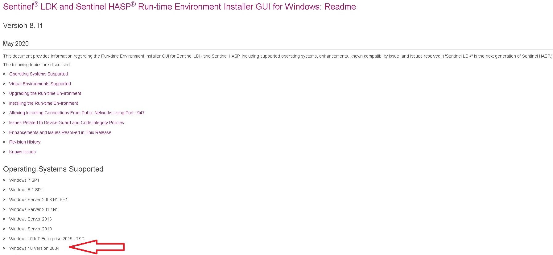 every version of Sentinel LDK Runtime drivers is suitable for certain version of windows....