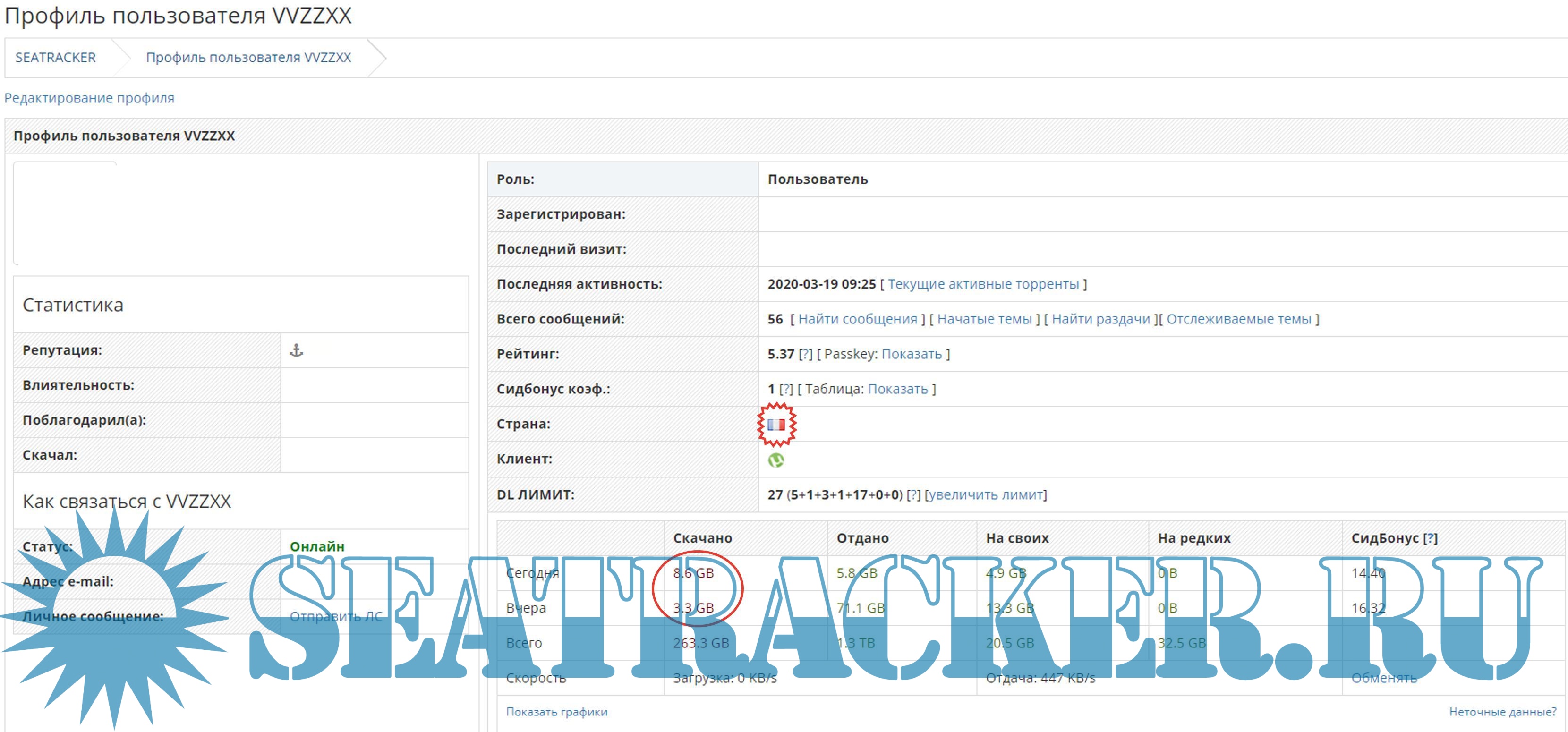 Статистика слегка скрыта логотипом сайта на скриншоте.