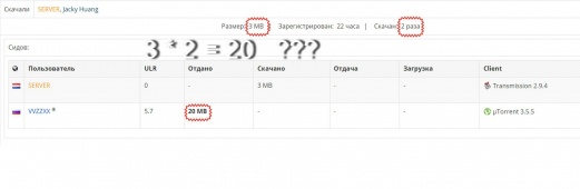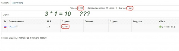 VVZZXX, буду изучать этот вопрос. Просьба понаблюдать за повторением ситуации в других ваших раздачах. В той раздаче, которую вы упомянули, в сидерах присутствует китаец, а эти товарищи скачивают самыми изощренными методами для того что бы обойти свой файрвол (скачивают с потерей пакетов, используют ботов, качают одновременно с нескольких IP адресов на одном аккаунте)