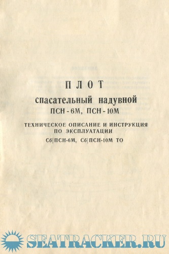 Настоящее техническое описание и инструкция по эксплуатации является пособием, предназначенным для изучения устройства и правил эксплуатации надувных спасательных плотов ПСН-6М и ПСН-10М.