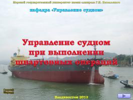 Описание: Курс лекций по предмету "Управление судном", предназначенный для курсантов и студентов судоводительской специальности. Лекция создана в формате презентации PPSX, присутствуют аудио и видео материалы.-Список лекций:
