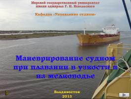 Маневрирование судном при плавании в узкости и на мелководье