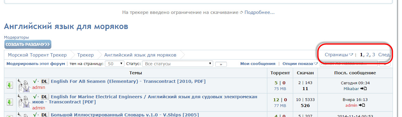 Для страницы с топиком