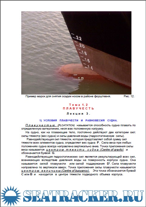 1) ПРЕДМЕТ “ТЕОРИЯ СУДНА” И ЕГО РОЛЬ В ПОДГОТОВКЕ