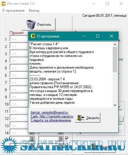 Версия: 1.4 Совместимость с Windows7: полная Язык интерфейса: русский Таблэтка: Не требуется Описание: В помощь Вахтенному помощнику для расчета общего стажа на судне при списании члена экипажа