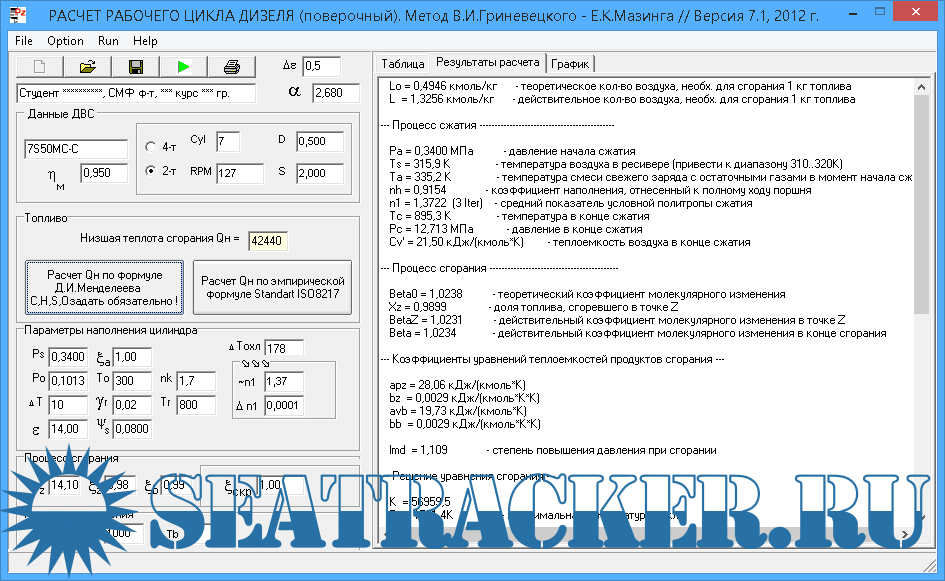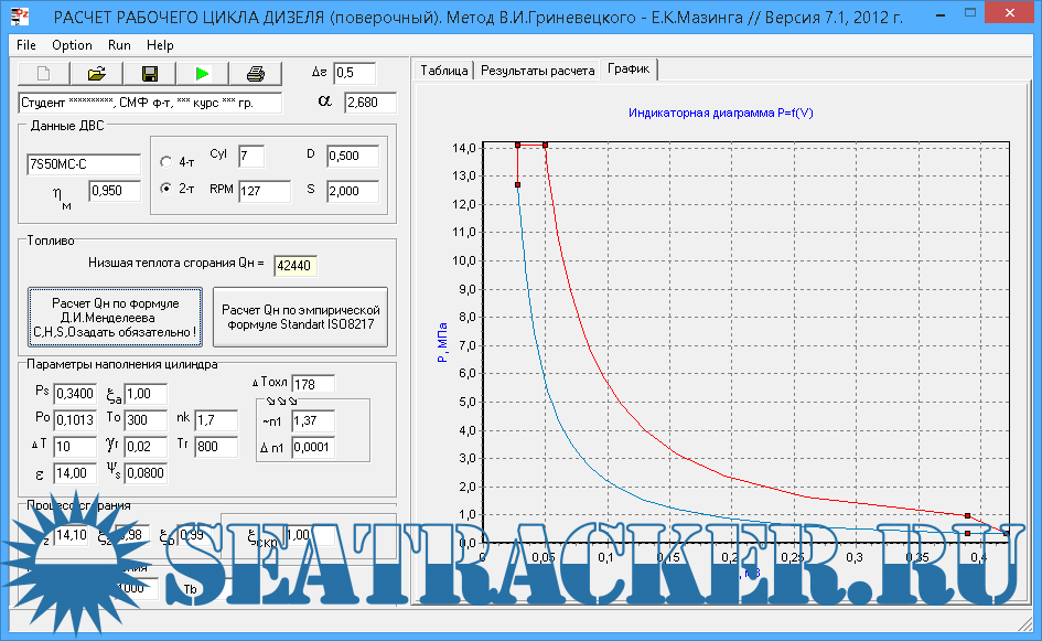 Описание: Программа позволяет выполнить расчёт рабочего цикла дизеля по методу В.И.Гриневецкого-Е.К.Мазинга
