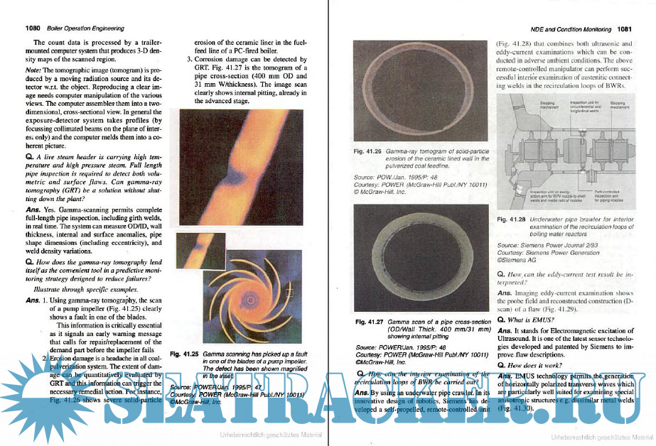 Year: 2008 Language: english Author: P. Chattopadhyay Genre: Technicla Publisher: McGraw Hill Education Edition: 2 ISBN: 978-1259001499 Format: PDF Quality: Scanned pages Pages count: 1242 Description: This exhaustively written treatise on steam its generation and uses is essentially a self-learning guide presented in question-answer form. The book addresses almost all the information necessary for Boiler Operators and Designers. Salient features: -New chapters on Boiler Control, Stoker-Fired Boilers, and HRSG and Combined Cycles -Topics on Boiler Design, Operation, Inspection, Maintenance and Up-gradation -Case studies on boilers and auxiliaries, water treatment, steam turbines, and condensers including preventive steps for avoiding failure and erosion of boilers