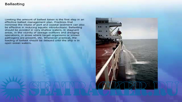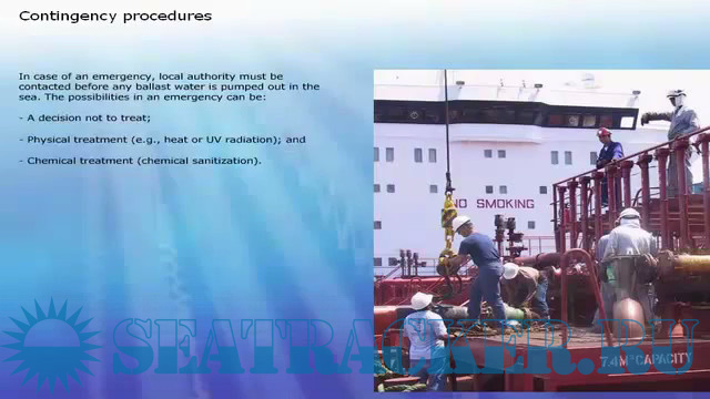 Year: 2016 Language: english Genre: Learning Video Playtime: 11:22 Quality: CamRip Format: MP4 Video: 640x360 / 192 kbps / 16:9 Audio: 96 kbps / 44.1 KHz Description: Ballast water treatment techniques to eliminating invasive aquatic species, reducing corrosion and complying with IMO ballast water guidelines. Ballast Water Management System for ships. Ocean-going ships take on ballast water to maintain stability when sailing without cargoes. This system ensures that ballast water is harmless when it is discharged into the sea at the loading port. Animal and plant plankton, bacteria, and other harmful materials in the ballast water are removed by the combined use of a high-performance filter, chemicals and venture tubes. This Section will provide you with information about various techniques for treating ballast water. Ballasting. Ballast water exchange at sea. Sequential method. Flow-through method. Ballast System. Precautions to be taken when exchanging ballast at sea . Non-release of blast water. Discharge to shore facility . Sediment removal. Ballast Techniques. Contingency procedures. Tang-ency procedures. Other not yet approved techniques. Mechanical treatment methods such as filtration separation. Physical treatment. Ballast Methods. Chemical treatment. Ballast water sampling. Location of sampling points.