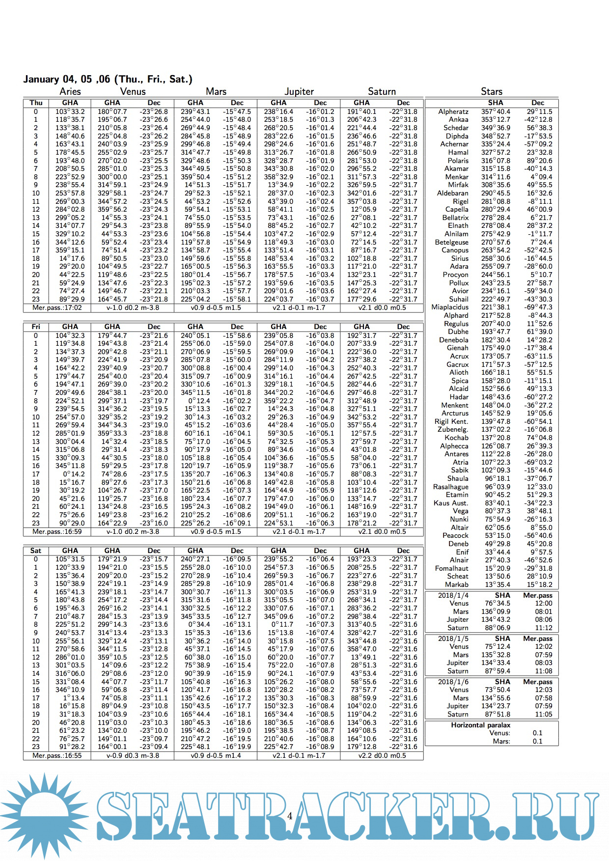 Description: These are computer generated tables. Use on your own risk. The accuracy has been checked as good as possible but can not be guaranteed. This means, if you get lost on the oceans because of errors in this publication I can not be held liable. For security relevant applications you should buy an official version of the nautical almanac.