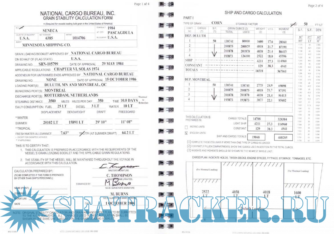 NCB Grain Stability Calculation Form - National Cargo Bureau [2021, PDF]