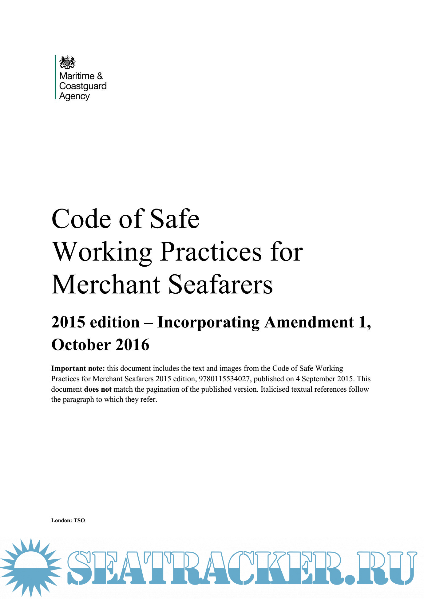Description: This Code is published by the MCA and endorsed by the National Maritime Occupational Health and Safety Committee, UK Chamber of Shipping, Nautilus International and the National Union of Rail, Maritime and Transport Workers as best practice guidance for improving health and safety on board ship. It is intended primary for merchant seafarers on UK-registerd ships, but very useful for ships of all other nations.