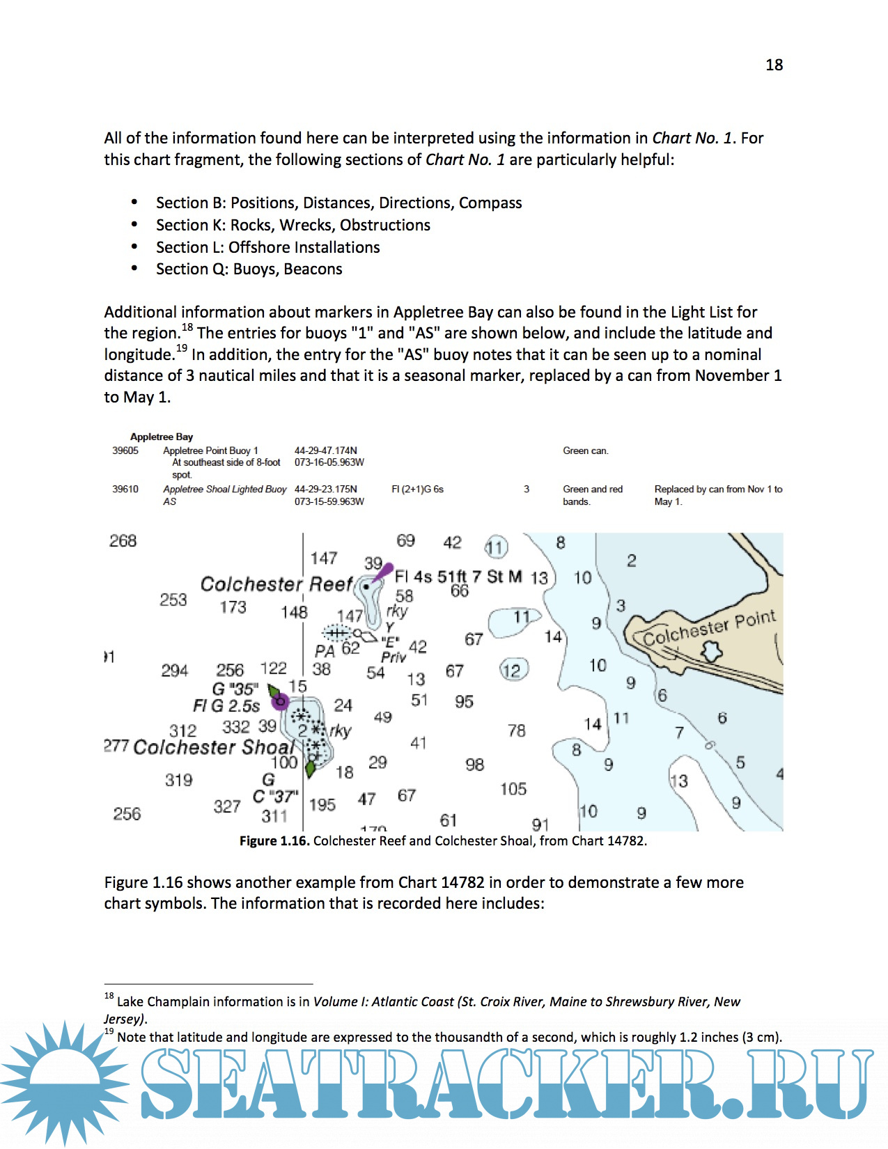 Description: This manual is intended for the recreational boater who wants to understand the elements of the nautical charts that we employ to learn how to navigate through a new body of water and perform basic plotting tasks. This manual is divided into two parts. Part 1 describes nautical charts from the perspective of a recreational mariner. Part 2 of the manual describes basic plotting. This sections starts by an explanation of the relationship between magnetic north (as shown on a compass), true north (as shown on a chart), and ship's north (i.e., as shown on your vessel's compass), and introduces the concepts of variance and deviation.