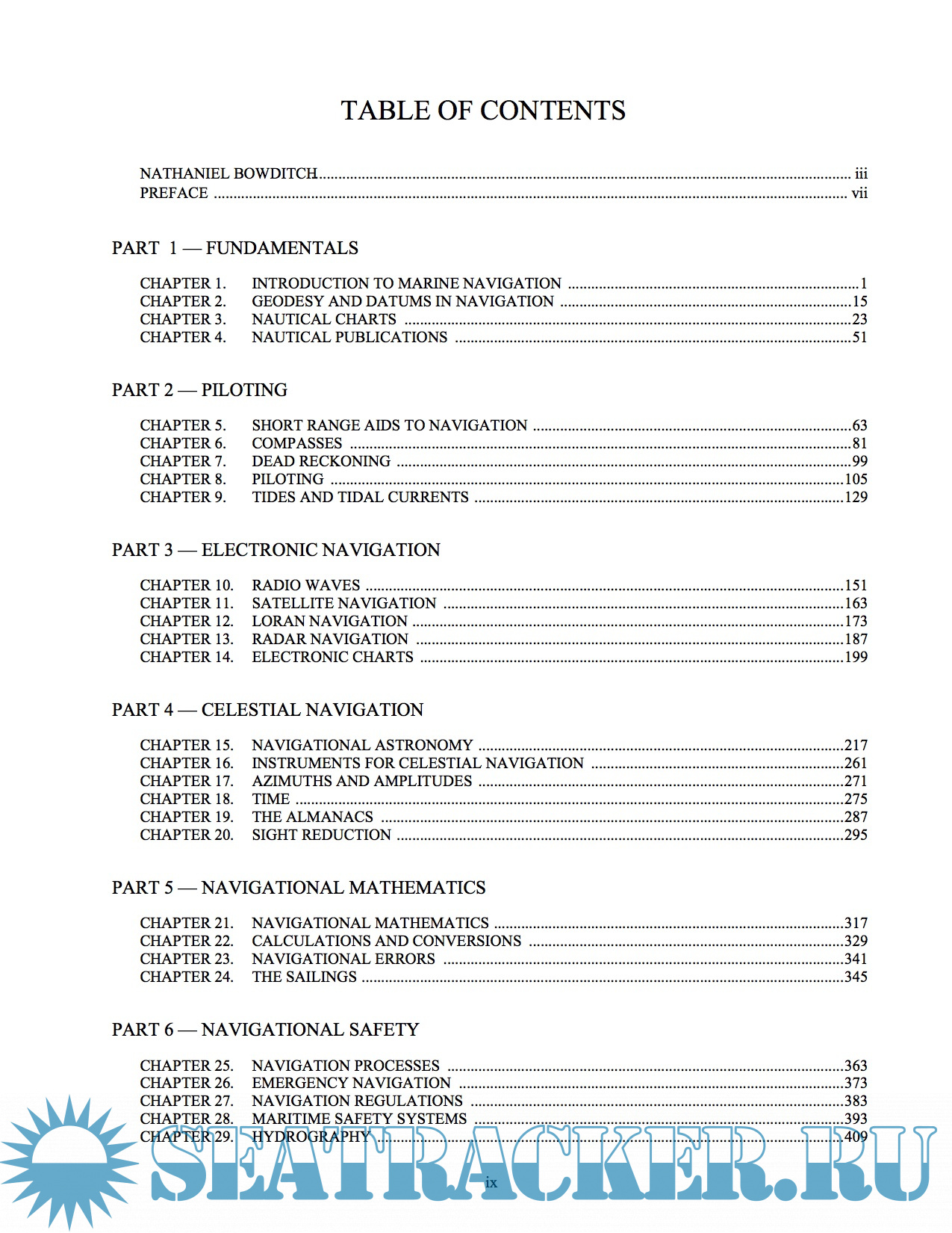 Year: 2004 Language: english Author: Nathaniel Bowditch Genre: Reference book Publisher: NATIONAL IMAGERY AND MAPPING AGENCY Edition: 2004 revised PDF version Format: PDF Quality: eBook Pages count: 883 Description: As much as it is a part of history, Bowditch is not a history book. As in past editions, dated material has been dropped and new methods, technologies and techniques added to keep pace with the rapidly changing world of navigation. The changes to this edition are intended to ensure that it remains the premier reference work for modern, practical marine navigation. This edition replaces but does not cancel former editions, which may be retained and consulted as to historical navigation methods not discussed herein.