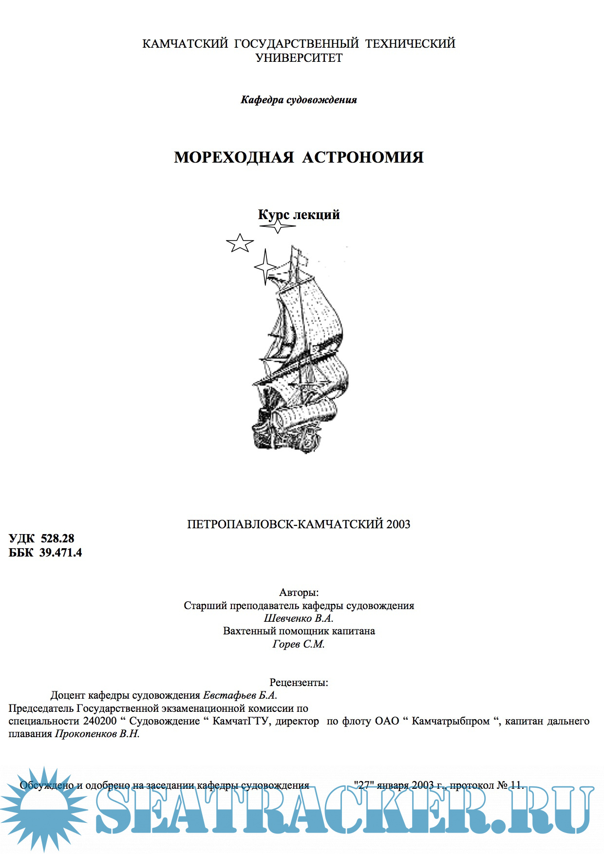 Описание: В курсе лекций изложены основые способы определения места судна в море по небесным светилам и определения поправки ком-пасов астрономическими методами. Раскрыты методы практичес-кой астрономии применительно к задачам судовождения.