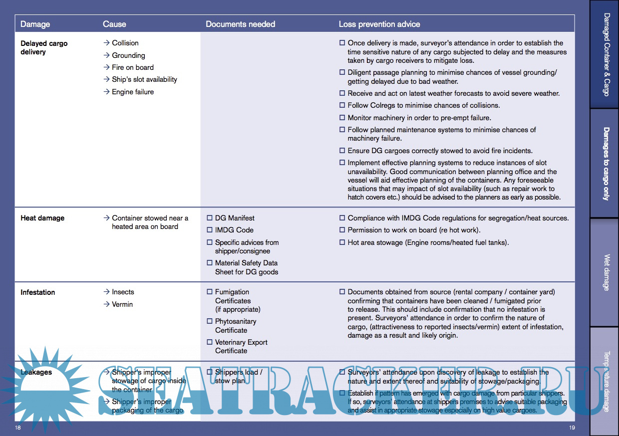 Description: This booklet has been designed as a ready use tabbed reference book to be used by Ship’s crew and office-based operations staff as a training aid and assistance in the event of an incident. Following a review by the Club which identified the top 25 causes of claims in containers. The publication has been written in conjunction with TMC Marine Consultancy, a leading maritime consultancy with surveyors specialising in container stowage as well as Jensen Associates an independent expert consultancy and survey company, specialising in the international trade of perishable products.
