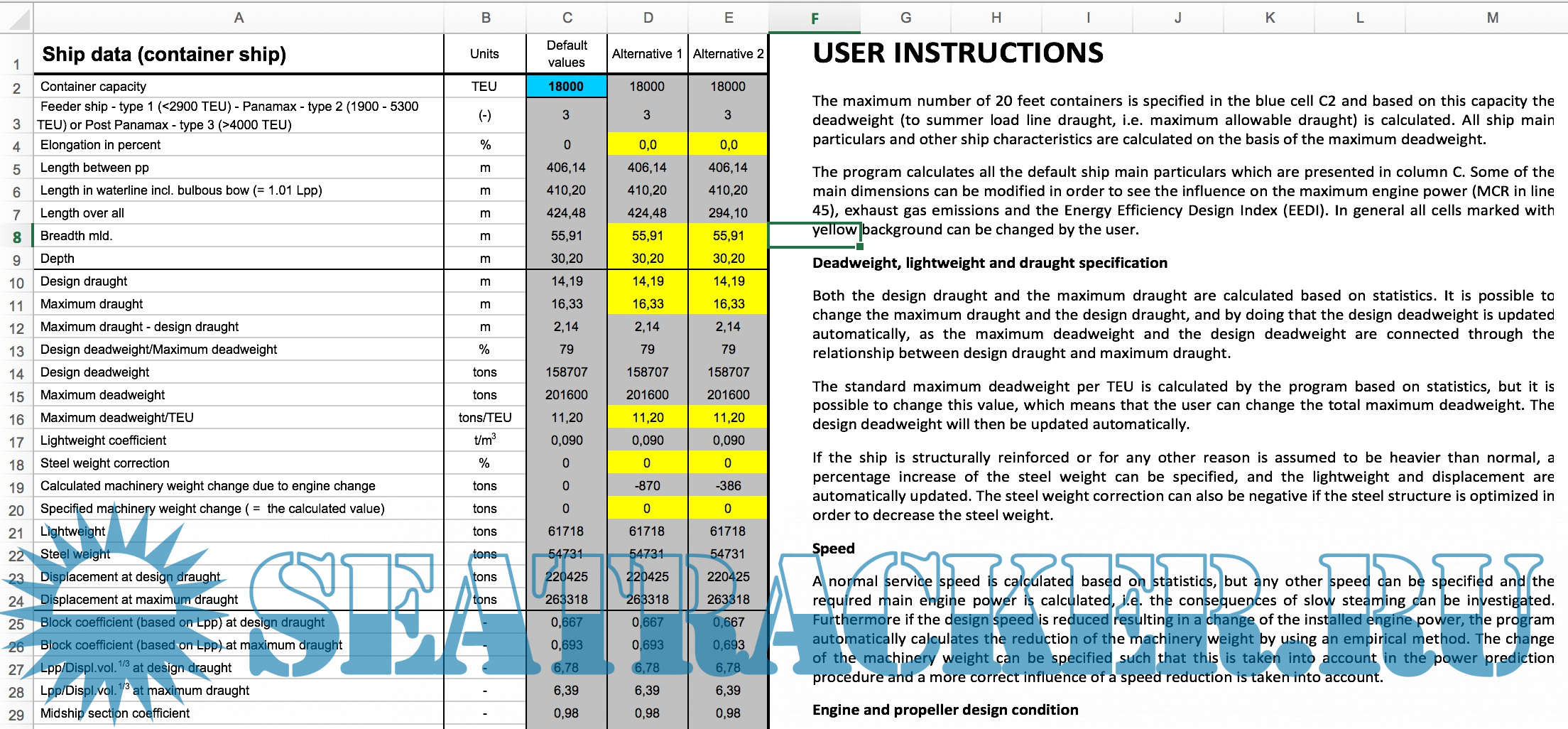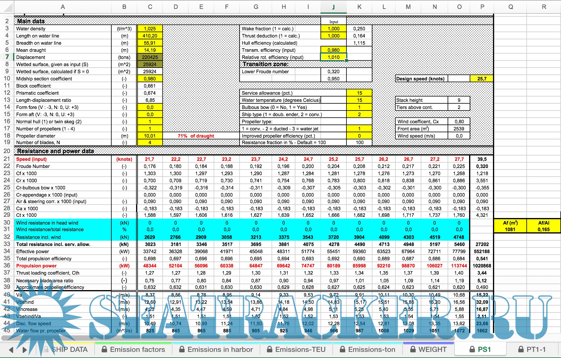 EXCEL Calculation tool for assessment of ships' energy consumption and fuel gas emissions, including CO2 (EEDI)