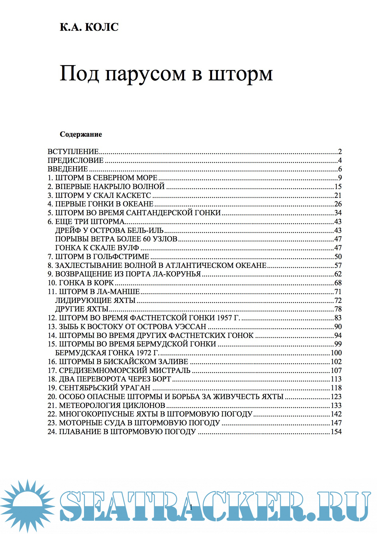 Описание: В книге рассказывается о длительных походах под парусом и многодневных соревнованиях крейсерско-гоночных яхт, в которых принимал участие сам автор и другие яхтсмены. Из всего многообразия эпизодов, происходящих во время плавания под парусом, отобраны наиболее драматические - борьба яхты с разбушевавшейся стихией ветра и волн. Книга интересна не только яхтсменам и людям, профессионально связанным с морем, - они найдут здесь много полезных сведений об управлении яхтой во время шторма, причинах различных аварий и т. п., - но и широкому кругу читателей, которых привлечет описание штормов по впечатлениям яхтсменов и захватывающие фотографии.